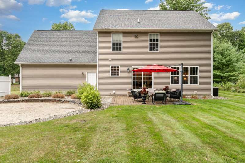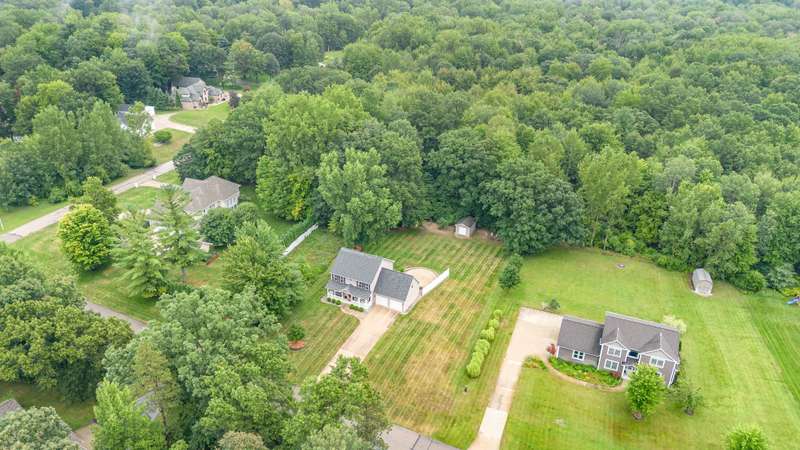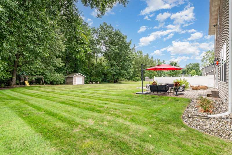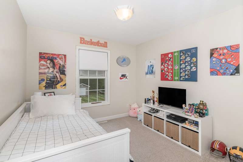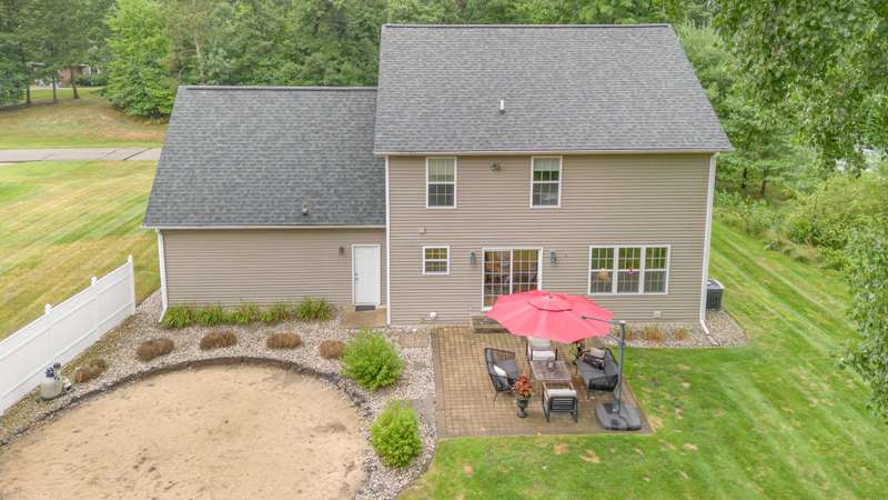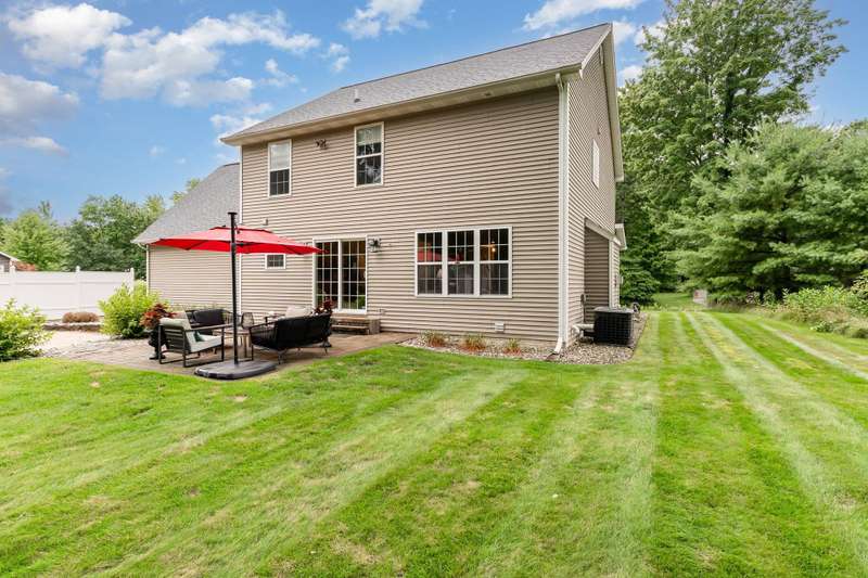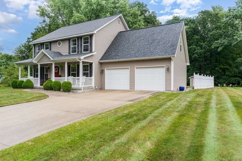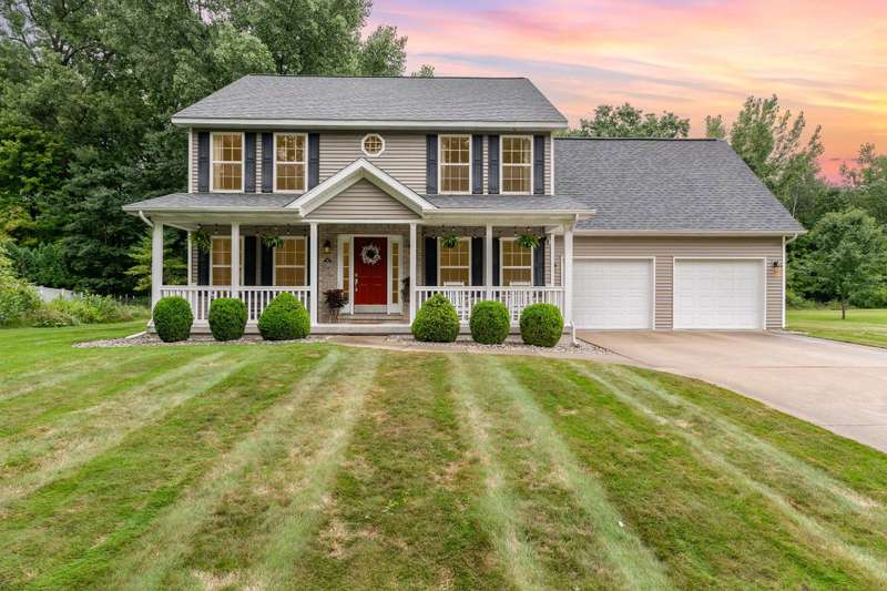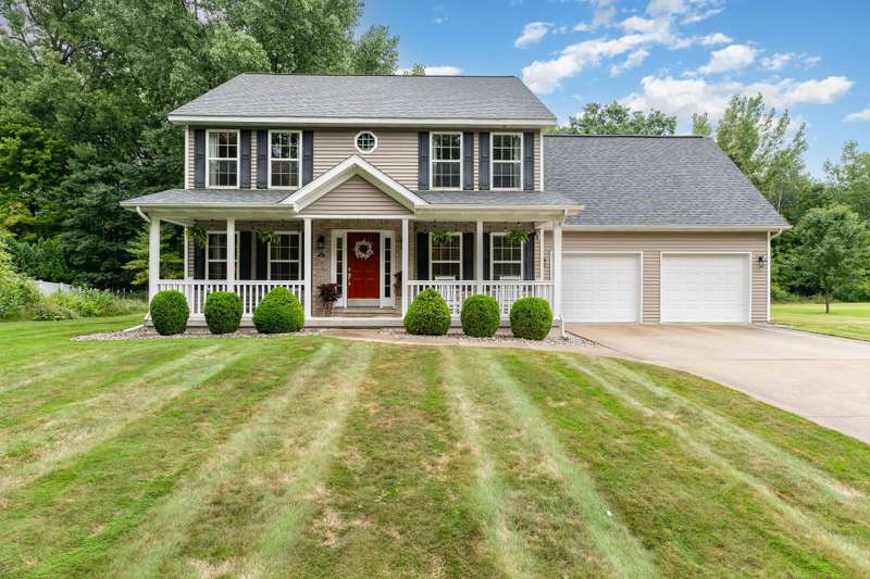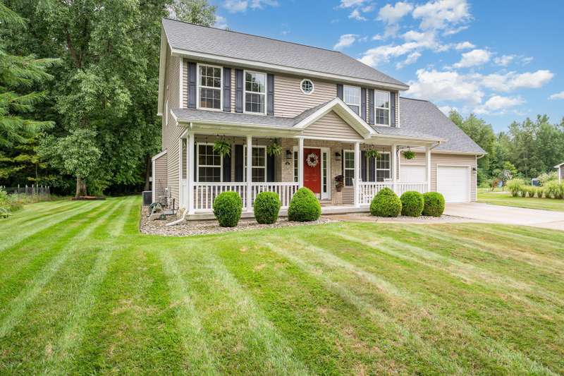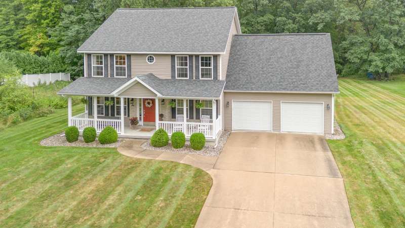 Welcome to 747 N Hidden Ridge Lane a beautifully maintained 4-bedroom, 2.5-bath home on nearly a full acre (.96) in the desirable Pine River Bluff Subdivision within Bullock Creek Schools. Step inside to find a bright and inviting layout featuring a spacious living room with a cozy gas fireplace, a dedicated home office, and a well-designed mudroom for everyday convenience. The upstairs houses all four bedrooms along with a handy second-story laundry room. An additional bonus room offers flexible space for hobbies, play, or a private retreat. The basement is plumbed for a bathroom, making it ready for future finishing. This home has been thoughtfully updated with a new roof (2021), tankless on-demand hot water heater (2023), washer (2023), and a brand-new refrigerator (2025). Additional highlights include a sprinkler system for easy lawn care, a central vacuum system, and city water. The 2.5-car garage, backyard shed, and expansive yard provide plenty of storage and outdoor enjoyment. Set in a peaceful neighborhood with a great backyard, this property blends comfort, function, and style ready for you to move in and make it your own.