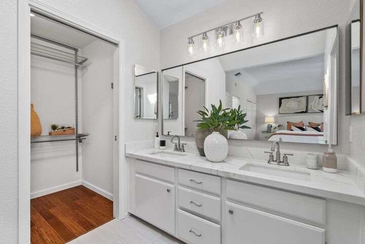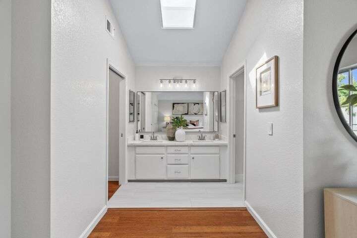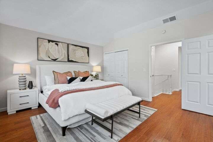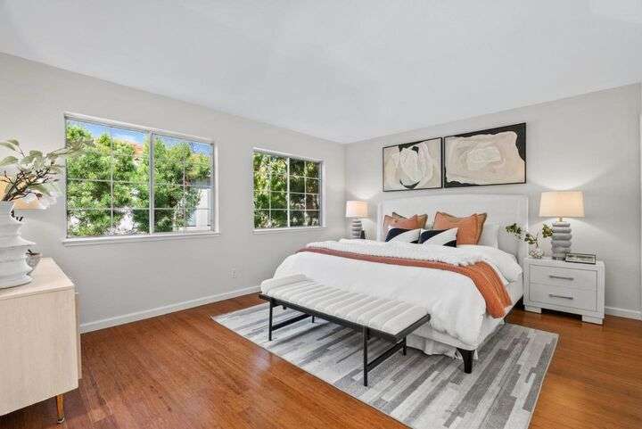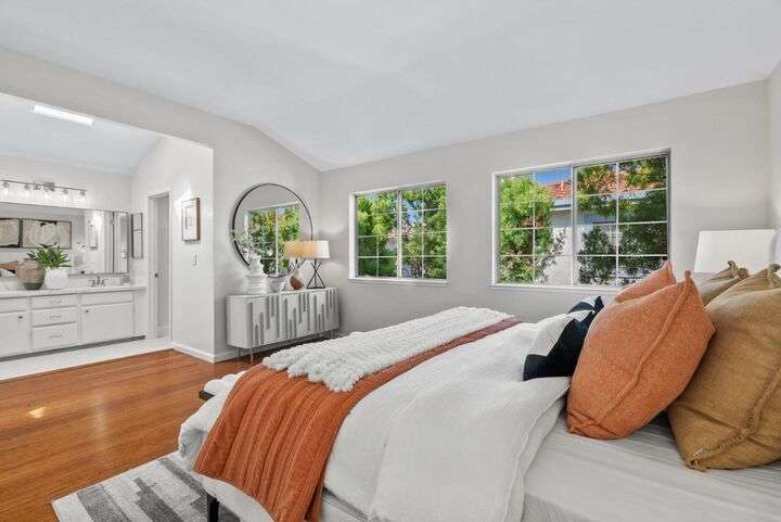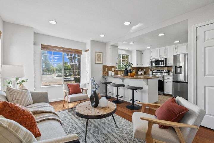 Welcome Home to the Beautiful 1806 Park Vista Circle in the Heart of Santa Clara! This End Unit is Completely Move In-Ready! Optimal Location in the Complex Looking Out over an Open Field, but Tucked in Away from any of the main streets. Fully Move-In Ready w/ Hardwood Floors Throughout Including Newly Resurfaced Hardwood Floors in the Living Room & New, Matching Hardwood Floors in the Entry! Central AC! Fresh Interior Paint Throughout! Recessed Lighting & ALL NEW Interior Light Fixtures. Spacious Back Patio Garden w/ Apple Space for Outdoor Dining or Lounging! ALL NEW Stainless Steel Samsung Appliances in the Kitchen! Pantry Closet, Granite Countertops & Breakfast Bar! Soaring Ceilings in Living Room which is Open to the Second Level! Dining Area overlooks the Open Area to the Living Room! All Bedrooms Have Raised Ceilings! Laundry Conveniently Located on Upper Level! Primary Suite Features Both a Walk-In Closet & a Secondary Closet! New Dual Sink Quartz Countertop & New Tile Flooring in Primary Ensuite! New Tile Flooring in Hall Bath! Skylight in Primary Ensuite & In Stairwell! 1 Year Old Whole House Water Filtration System! All New Bifold Closet Doors! 6 Min Drive to Nvidia, 7 Min Drive to Costco, 8 Min Drive to Whole Foods, Walk to Triton Museum! Fabulous Location!