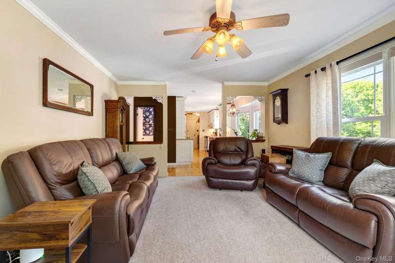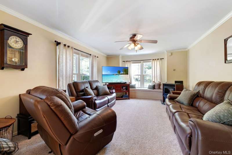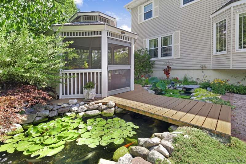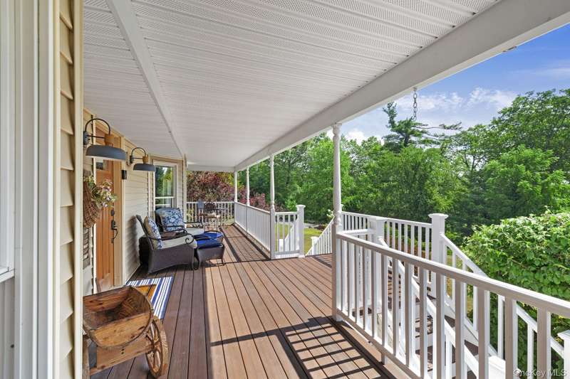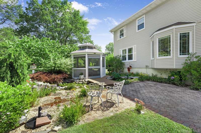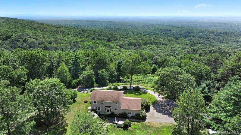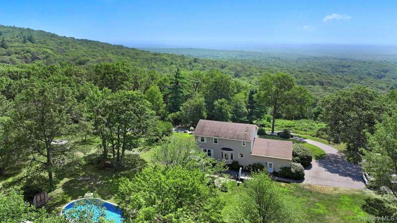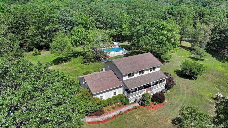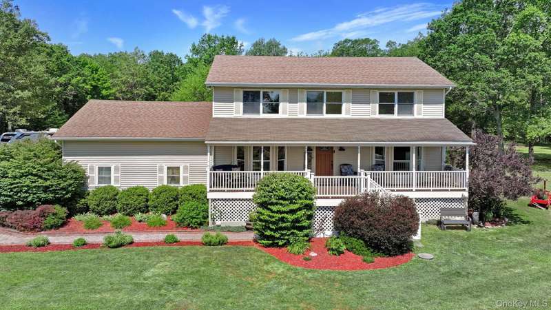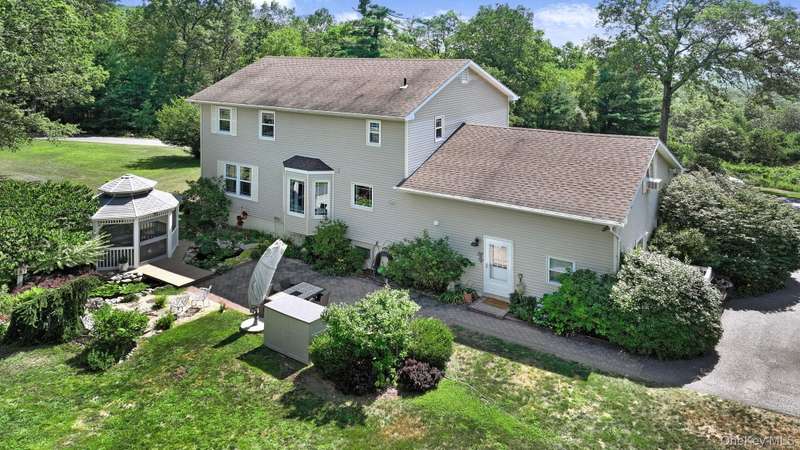 Enjoy breathtaking year-round mountain views from this stunning 4-bedroom Colonial nestled on gorgeous, private grounds. The welcoming front porch with composite decking is the perfect place to relax and take in the serene scenery. Inside, you’ll find a spacious layout featuring a formal living room, family room, formal dining room, and a large kitchen with ample cabinetry and lovely backyard views. Upstairs offers three generously sized bedrooms, a full bath, and a primary suite with dual closets and a private bathroom. A finished bonus room above the laundry area adds extra flexibility for a home office, playroom, or den. But there's more—this home also includes a separate finished living space with two rooms, a full bath, kitchenette, and private entrance—ideal for multi-generational living or an in-home business. The outdoor setting is truly exceptional, with multiple sheds, an above-ground pool, a tranquil koi pond with composite decking, and a charming gazebo area. Perfect for relaxing, entertaining, or starting a homestead—bring your horses, pets, and love for the outdoors! Pine Bush Schools. Close to Sam's Point, Minnewaska and Mohonk Mountain for exceptional hiking trails. Angry Orchard, local wineries and breweries, Resorts Catskill World Casino, Legoland and more!