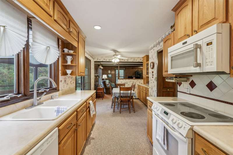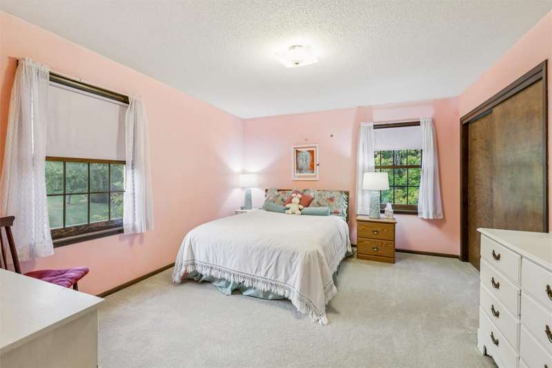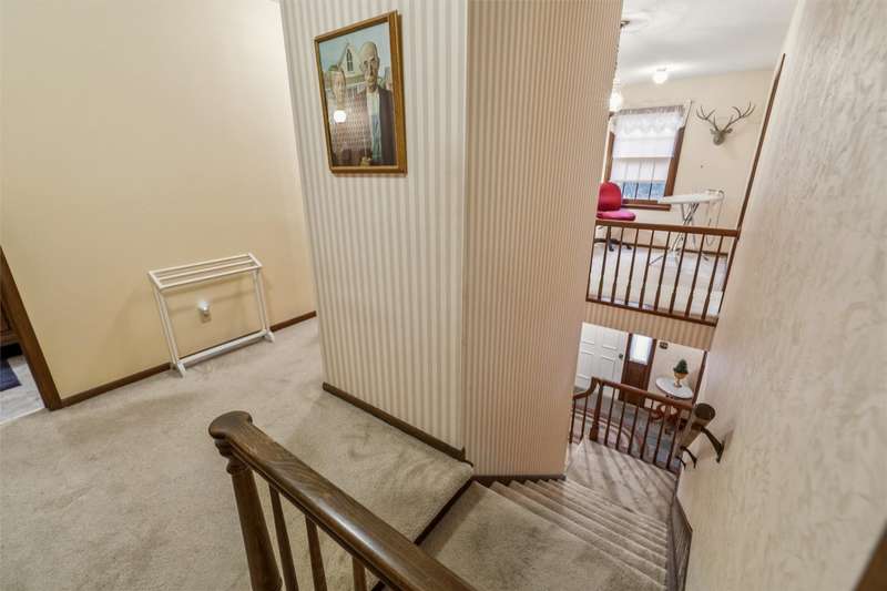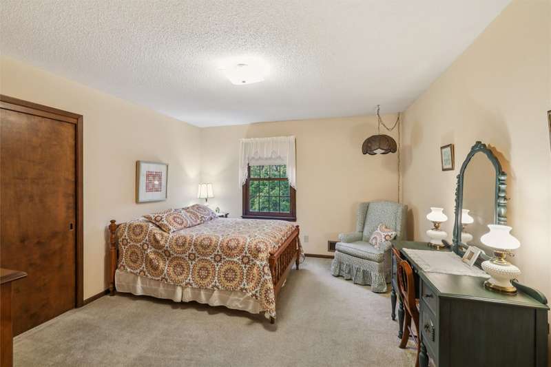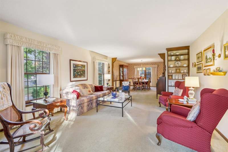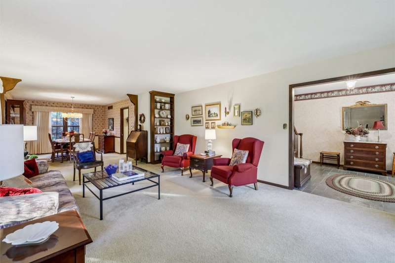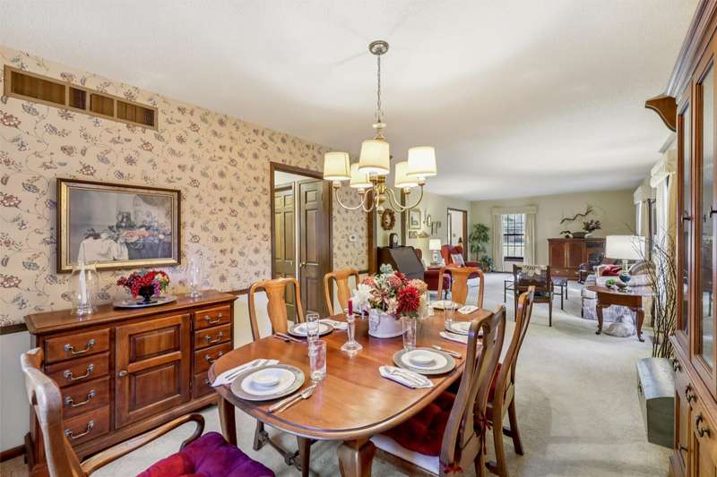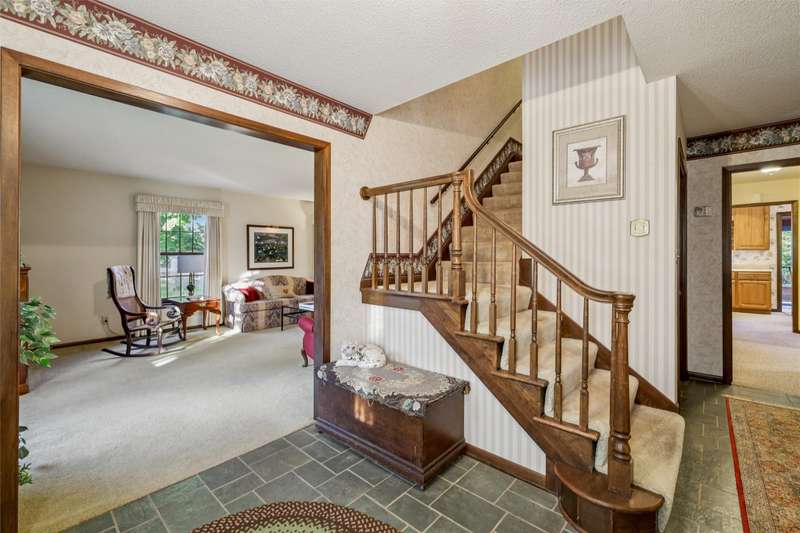 Feel the pride of ownership in this honored and well-maintained, one-owner, colonial, saltbox style home. This 4-bedroom beauty is situated on a generous lot in an established neighborhood. The main floor features 2 family room areas, a formal dining area, a kitchen with eat-in capabilities, as well as a half bath and laundry for convenience. A screened porch is perfectly positioned off the kitchen where you can enjoy views of the private backyard and mature landscaping. The eat in portion of the kitchen features an extra built in side board of cabinets, perfect for display and function! This kitchen will come fully equipped, as all appliances stay. The upper level of the home features 4 generously sized bedrooms, as well as 2 bathrooms. The primary bedroom features a large walk-in closet as well as a vanity area. Thoughtful design in the second story offers plenty of storage areas for your essentials and more. A flex space between two of the bedrooms could be used for an office, sewing area, or reading nook. In case you need more room in this 2800 square foot home, bring your vision for a future living space in the lower level or leave it as is for more storage. The home's exterior is virtually maintenance free with new vinyl siding and roof, including gutter guards. A 2-car garage rounds out the exterior. This home holds classic character, ample living and space, & thoughtful design with endless opportunities to customize, if desired. Call your Realtor for a showing today!