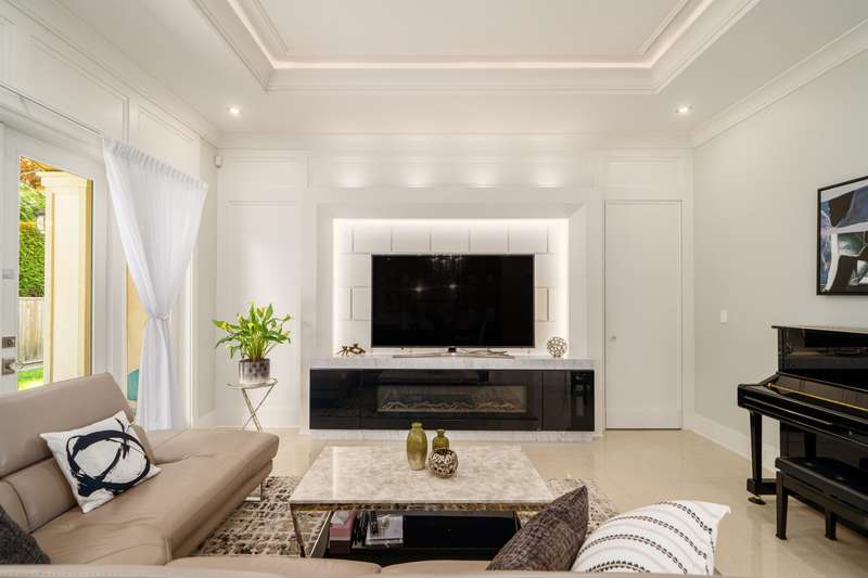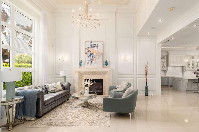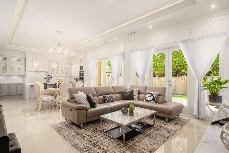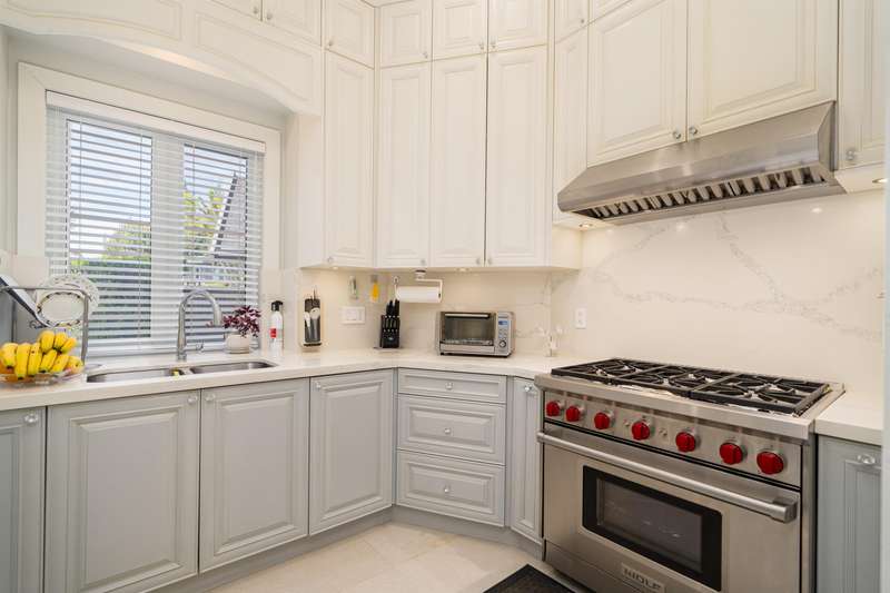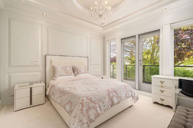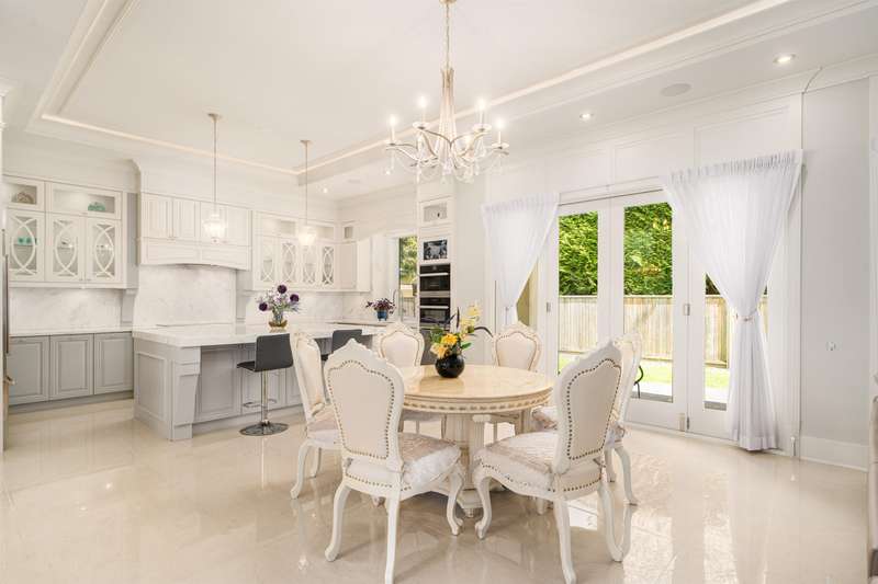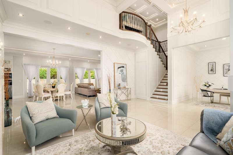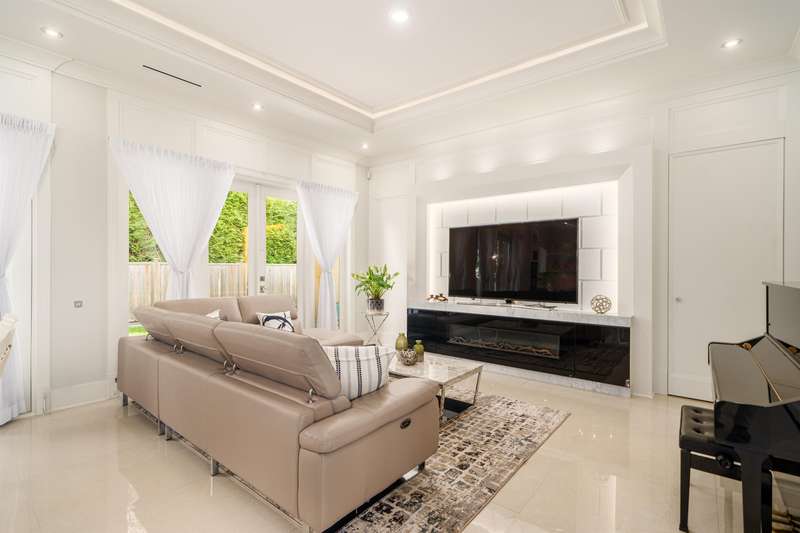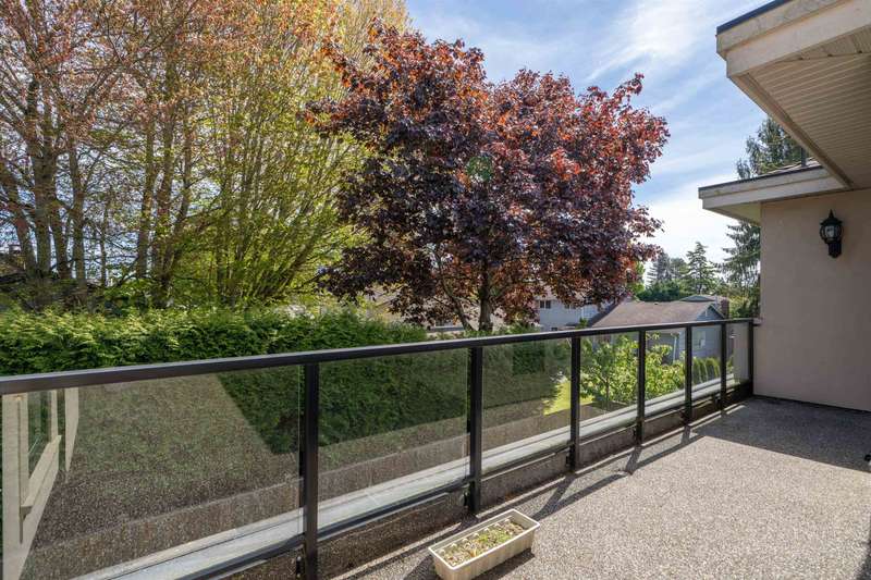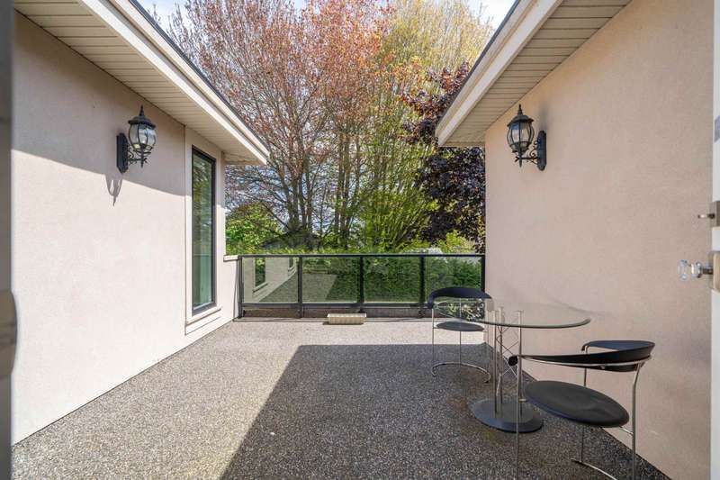 Better than new! Stunning custom home in prestigious Broadmoor. Open-concept design with soaring ceilings in elegant living/dining areas, feature walls, and Schonbek lighting. Gourmet kitchen with premium cabinets, marble counters, and top-tier Sub-Zero & Wolf appliances. Upscale plumbing fixtures, including smart Toto toilet. Main floor media room with ensuite doubles as guest room. Upstairs offers two spacious master suites plus two cozy bedrooms. Huge private deck—perfect for gatherings. Durable diamond-shaped asphalt shingle roof. Smart home system adds comfort and security. Meticulously built for discerning buyers. Walk to top schools, parks, transit, shops, and more. School catchments: Maple Lane Elementary & Steveston-London Secondary.