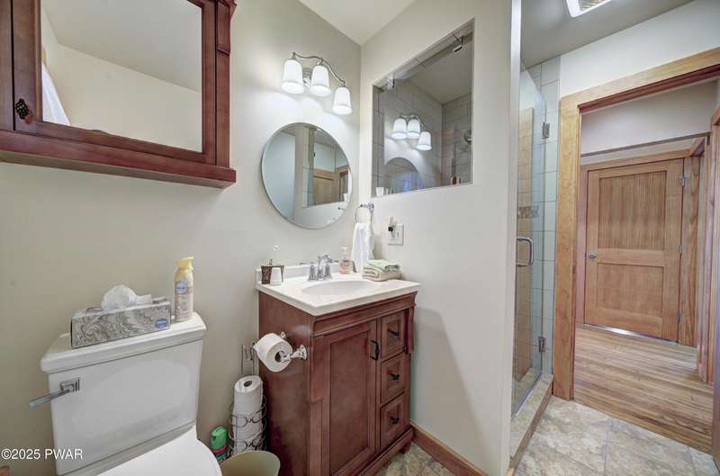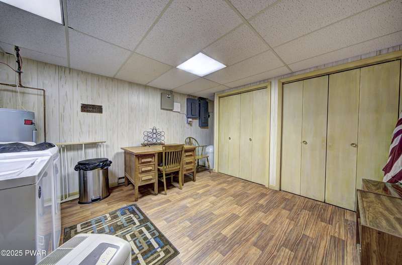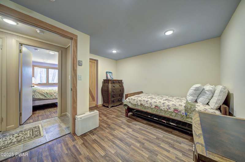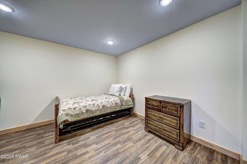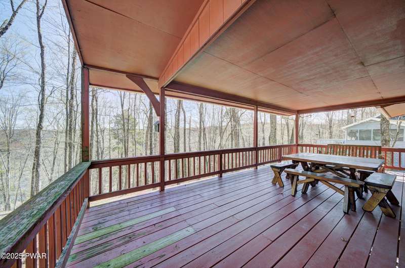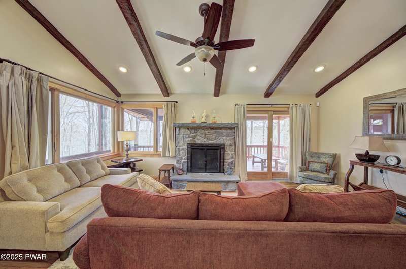 Tucked in the trees just a short walk from the shores of Lake Wallenpaupack, this updated 4-bedroom, 2-bathroom cabin blends cozy charm with modern comfort. Enjoy seasonal lake views from the covered deck--perfect for morning coffee or evening relaxation.Inside, the main level offers an inviting living room with a wood-burning fireplace, two spacious bedrooms, and a beautifully renovated kitchen and bathroom featuring modern finishes and thoughtful upgrades. The lower level adds extra living space with a family room, two additional bedrooms, laundry/utility area, and direct walk-out access to the outdoors--ideal for guests or extended stays.With lake rights to Lake Wallenpaupack, you'll enjoy easy access to boating, fishing, and year-round recreation. Whether you're looking for a full-time residence or a weekend escape, this cabin offers the perfect blend of location, comfort, and lake lifestyle.