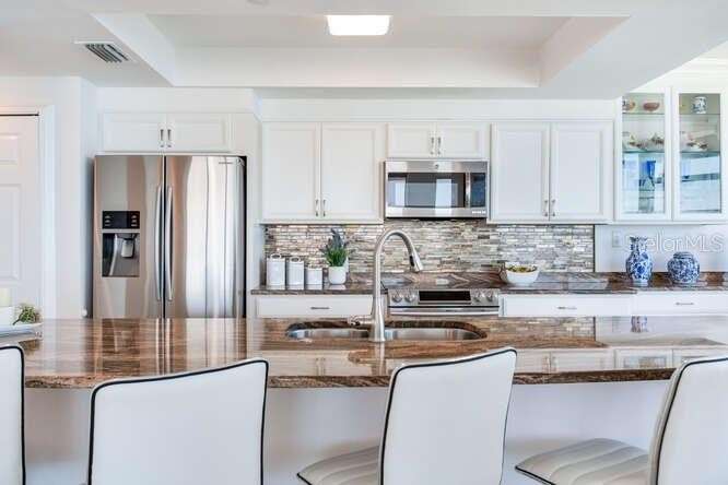 WELCOME HOME TO YOUR BEAUTIFULLY UPDATED, DIRECT BEACH-FRONT OASIS WITH AMAZING PANORAMIC VIEWS OF THE GULF OF MEXICO. IT HAS EVERYTHING YOU NEED, EVEN A PRIVATE GARAGE! WOW is the best way to describe this tastefully updated condominium with the Gulf of Mexico as your picturesque backdrop. THIS RARE AND HIGHLY SOUGHT-AFTER EXCEPTIONAL CONDO IS UNIQUELY POSITIONED ON THE NORTHWEST CORNER, OFFERING NOT ONLY UNOBSTRUCTED WEST VIEW BUT ALSO OPEN NORTHER VIEWS OF THE BEACH DUE TO THE NEIGHBORING COMMUNITY’S SETBACK, SHOWCASING SWEEPING VISTAS FROM THE GULF OF MEXICO TO CLEARWATER HARBOR. Upon entering this 3-bedroom, 2.5-bathroom spacious 1,942-sq-ft residence with open floorplan, you are greeted with an abundance of natural light and floor-to-ceiling glass, offering breathtaking panoramic water views from every room. Create lasting memories and enjoy watching sunsets from one of two balconies with incredible views. The west wrap-around balcony offers magnificent Gulf vistas, and the north balcony offers beautiful views of beach and bay! The kitchens feature contemporary cabinetry with gorgeous granite countertops, breakfast bar, and stainless-steel appliances. Adjacent to the kitchen is the dining area with magnificent open-water views. The Owner’s Suite features floor-to-ceiling sliding glass door and opens to a balcony where you can watch seasonal sunrise and feel cool gulf breezes with your morning coffee. The Ultimar on Sand Key is a desirable beachfront resort-style, gated community that offers a friendly, casual, yet luxurious lifestyle! Amenities include a clubroom with a full kitchen, TV/media center, billiard room and fitness room with steam/sauna. Outdoor amenities include three heated pools including a lap pool, three tennis courts, putting green, croquet lawn, basketball court, lush landscaping, on-site management and 24/7 guard-gate access. This condo comes with a private garage (#19) close to the semi-private lobby with coded elevator to your own floor for those looking for added privacy, security and accessibility. This property is convenient to shopping, restaurants, water activities, and to both Clearwater/St. Petersburg and Tampa International airports. Whether you’re seeking a dream vacation home or a luxurious year-round retreat, this rare direct Gulf-front gem offers a lifestyle without compromise. Schedule your private showing today!