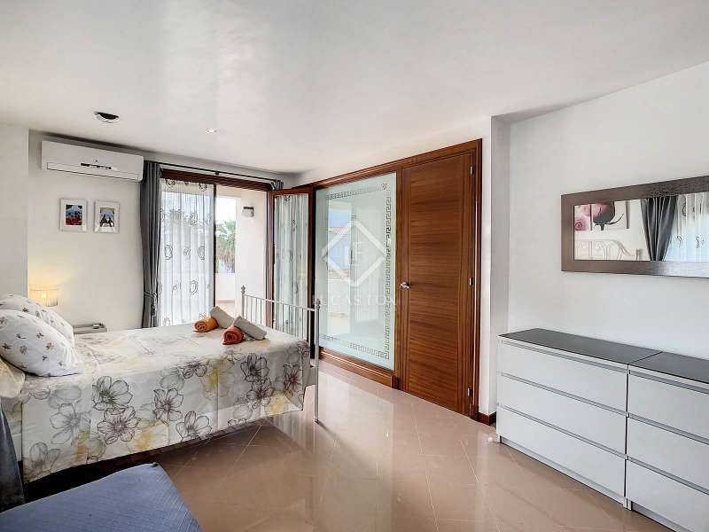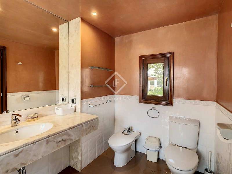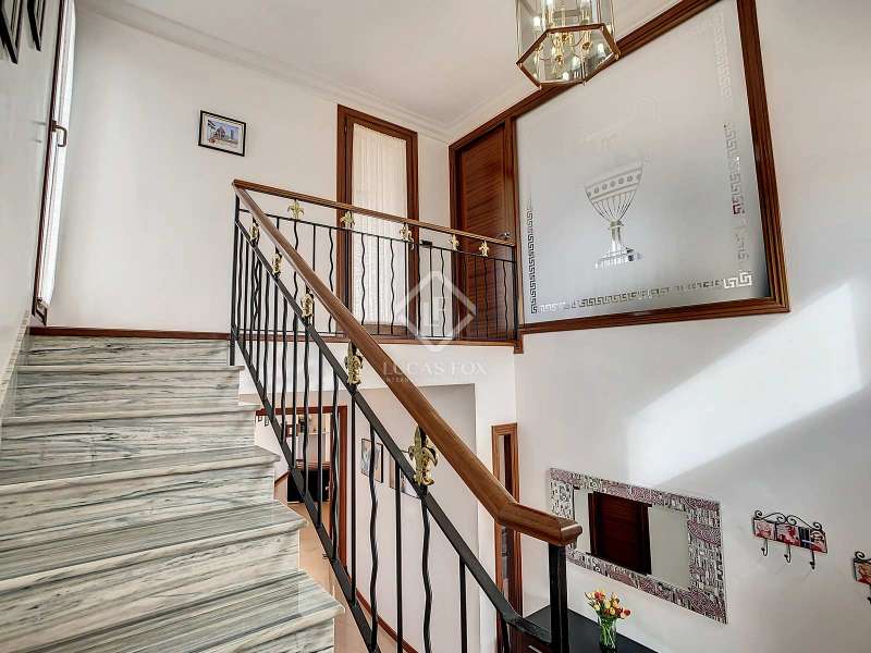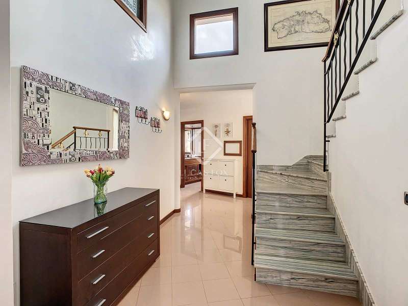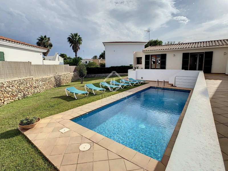 Villa of 309 m² built on a plot of 949 m² in the prestigious urbanization of Sa Caleta, just 2 kilometers from the center of Ciutadella. The house is distributed over three floors. On the ground floor, we find a hall with indirect light through a skylight. To the right, it leads us to the laundry room with access to the patio and the night area. It has a bathroom, two double bedrooms with built-in wardrobes and a double bedroom with built-in wardrobe, a private bathroom with a hydromassage bathtub, split hot/cold air conditioning and access to a terrace. To the left of the hall, we come to a spacious living-dining room with exposed wooden beams, a wood-burning fireplace and a fully equipped kitchen with a dining area open to the living room. Next, we come to a large terrace, accessible from different parts of the house, with a barbecue area that overlooks the pool and the garden. An elegant marble staircase leads us to the first floor where we find a double bedroom with split air conditioning and heating with access to a terrace. On the semi-basement floor we have two storage rooms, a space for different uses and a garage for two cars. The villa has a tourist license. Undoubtedly an ideal home to live all year round, spend time with family and/or friends, or rent it for tourism. Contact us for more information or to arrange a visit.