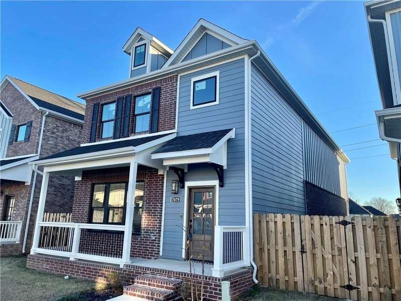 Welcome to this beautifully designed new 4-bedroom, 3.5-bath home that perfectly balances modern sophistication with farmhouse charm. The open-concept layout highlights the spacious living, kitchen, and dining areas, with soaring ceilings and abundant natural light. The primary suite is conveniently located on the main floor for ease and privacy, while the upstairs features a versatile loft space, perfect for a home office, media room, or playroom. Designed with convenience in mind, this home includes laundry hook-ups on both levels to simplify your daily routines. Step outside to enjoy a cozy front porch and a private side fenced yard, ideal for entertaining or relaxing. A 2-car garage provides ample storage, and the home is just steps away from a neighborhood park and playground, schools, shopping, dining, and major highways. Virtual tour is of similar home for illustrative purposes only. Actual construction and finishes may vary. Home can also be bought as part of a package. See MLS #1317029.