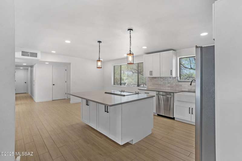 Range priced- seller will accept/counter offers within the range of $530,000-$560,000.Incredible NE Tucson home, nestled in the desert with beautiful natural desert all around you on this spacious .88 acre lot. An incredible NE beauty completely remodeled in 2023. New ceramic tile flooring throughout, new kitchen with cabinets, countertops, and appliances, new bathrooms with vanities and remodeled tubs/showers, new paint and wall texture, new fixtures and a new additional garage! If you want privacy and serenity in the NE foothills with beautiful views, a fireplace and a pool, this home is for you!