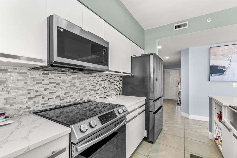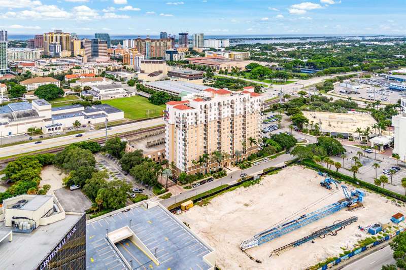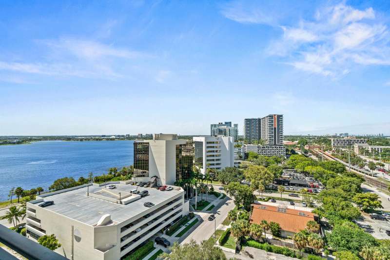 Experience breathtaking sunrise and sunset views along with ocean breezes from your private balcony on 14th floor in Downtown West Palm Beach! This private corner unit offers 2 master suites, a private wraparound balcony w/panoramic views of Downtown West Palm Beach, Clear Lake and beyond. Updated throughout with ceramic tile flooring, new kitchen cabinetry, quartz counter tops and appliances, new washer/dryer and updated bathrooms. New Roof and Building A/C 2024. Investor friendly, buy today, rent tomorrow! Resort style amenities include 24 Hour front desk concierge, resort style pool w/jacuzzi, BBQ grill area, gym, social room w/TV, bar & billiard table, cyber business center, bike storage, & gated covered parking for 2 vehicles. EV charging available.