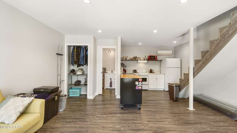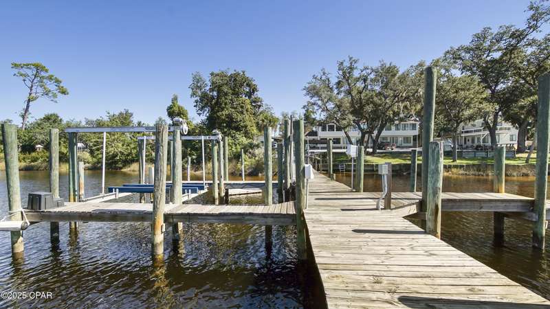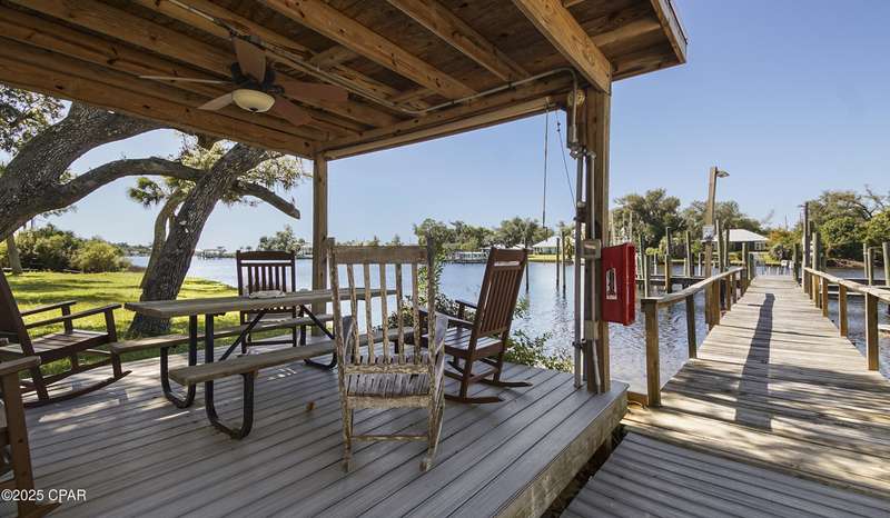 This unique waterfront hideaway is tucked away on the bay in a charming, 6-unit complex. Every home here enjoys its own private boat slip, and the surprisingly low HOA covers your slip, some utilities, and exterior insurance, making it as worry-free as it is beautiful. All exteriors units have new hardi-board siding and paint. The entire dock and pilings have been replaced with composite decking since these photos were taken. This is just the neatest place and a must see!Perfect for the avid angler or island hopper, Mariners Cove offers easy access to Shell Island, the pass and out to deep-water fishing. Your 16' x 30' slip is equipped with a 10,000 lb lift.The inside was completely updated in 2019 with a new roof and Pella windows, expanded upstairs living area, water heater, two mini-split units, vinyl plank flooring, paint, recessed lighting and a generator quick connect. The kitchen was done very simple as the owner wanted but cabinets can easily be added. The new Pella windows have built in blinds so they can be completely open with unobstructive views from every room and level of this unit. There are hurricane shutters made for each window, this are easy to put up and they stack to store. Mariners Cove has approx. 185 feet of waterfront, a pavilion for grilling the days catch right on the water and storage area for kayaks. There is a storage area and workshop for storing of tools and boating equipment on the property. After a day on the water, there's a community bathroom for guests and a shared laundry room to make clean-up a breeze, all just steps from your door.Don't miss out on this waterfront living at this price!