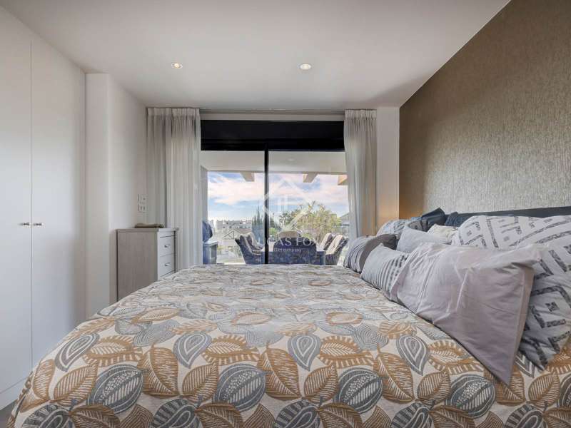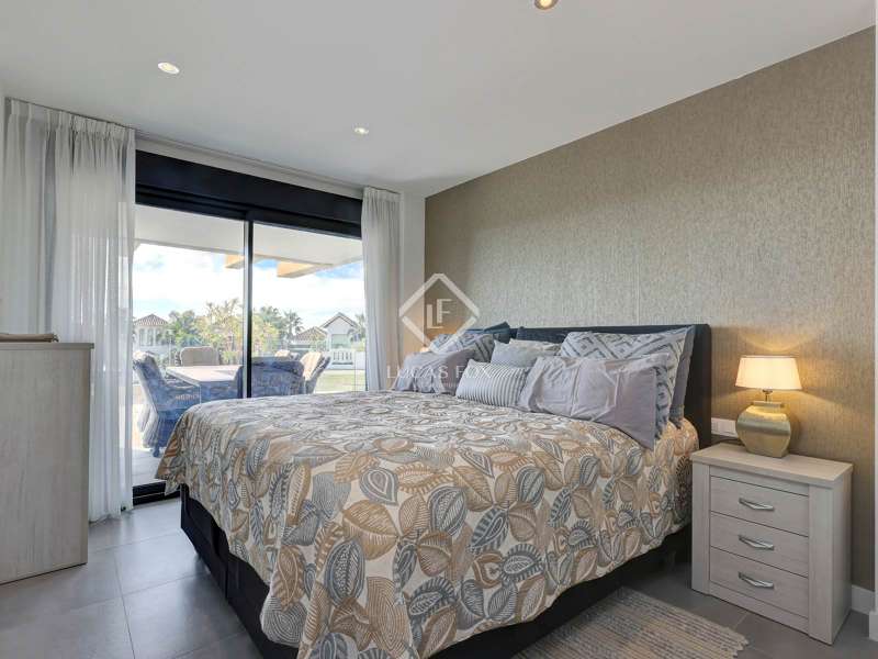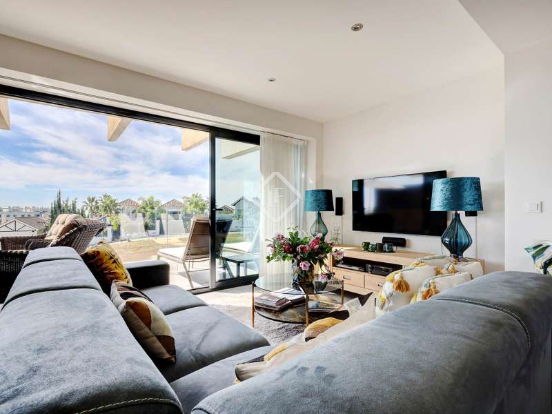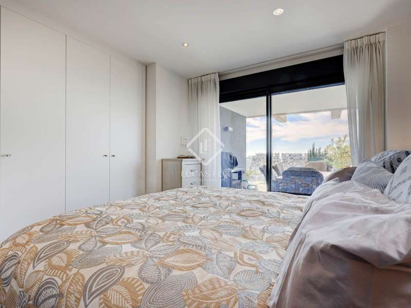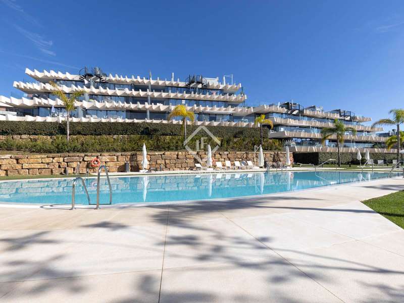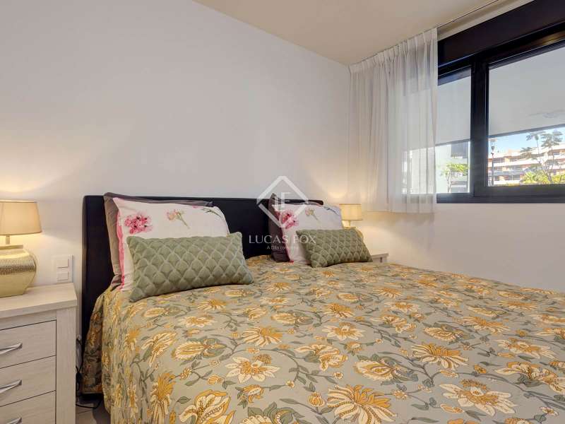 Upon entering Oasis 325, the gated community welcomes you with beautifully designed apartments encircling an exquisite central swimming pool, perfect for basking in 325 days of sun. The development boasts a well-equipped gym/fitness area and communal seating for meetings or leisure. Upon entering the apartment located on the first floor, you will be greeted by an open-plan layout that offers an immediate, unobstructed view of the dining, living, and kitchen areas that allows direct access to the 30 m² terrace. The large south-facing terrace, furnished with ample seating for sunny mornings and afternoons, along with a substantial dining table and outside barbecue area, to enjoy the great Mediterranean weather. The apartment features a spacious main bedroom, with fitted wardrobes, direct access to the terrace trough two large windows and an en-suite bathroom with a double sink. Moving down the hallway, you will find two generously sized guest bedrooms with views overlooking the apartment complex, both of the bedrooms share a large guest bathroom with a shower. Adjacent to the last bedroom, there is a convenient laundry room equipped with a washer and dryer. Contact us today for further information about this extraordinary property.