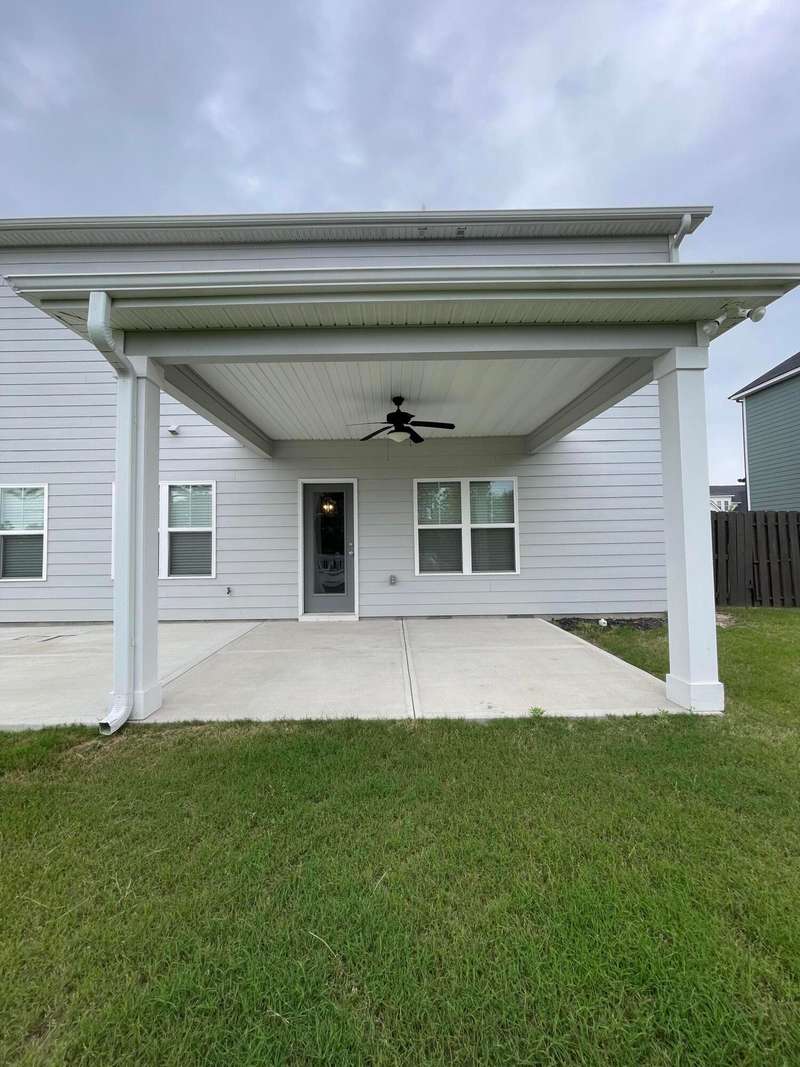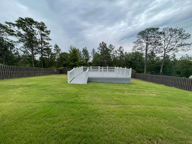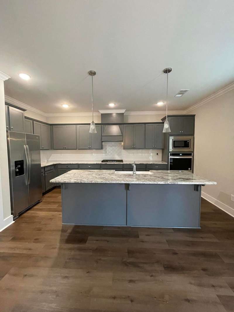 Welcome to this beautifully designed home featuring luxury vinyl plank (LVP) flooring throughout the main level. The spacious dining room and inviting living room boast a cozy gas log fireplace and ceiling fan, perfect for relaxing or entertaining. The chef's kitchen is a standout, complete with a center island, granite countertops, walk-in pantry, gas cooktop, built-in oven, microwave, refrigerator, and a stylish farm sink. A convenient half bath completes the downstairs. Upstairs, enjoy plush carpeting throughout the bedrooms and hallway. The owner's suite offers a tray ceiling, ceiling fan, and a luxurious en-suite bath with tile flooring, a double sink vanity, garden tub, walk-in shower, water closet, and an expansive walk-in closet. Three additional bedrooms each feature walk-in closets and share a full guest bathroom with tile flooring, a double vanity, and a tub/shower combo. The laundry room is both functional and stylish with a barn door and built-in shelving. Step outside to a private, fenced backyard complete with a covered patio with ceiling fan, additional open patio space, and a raised deck - ideal for outdoor living. A covered front porch adds even more charm to this exceptional property.