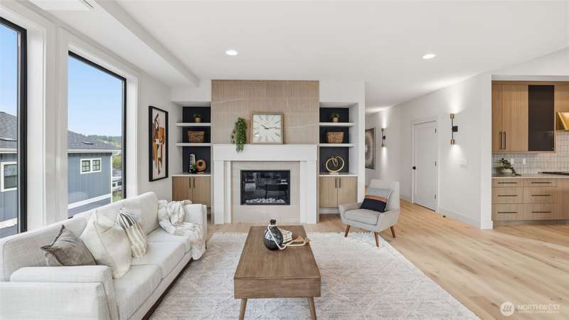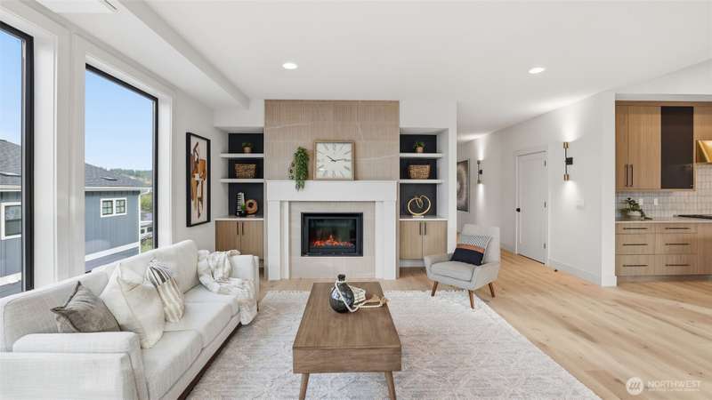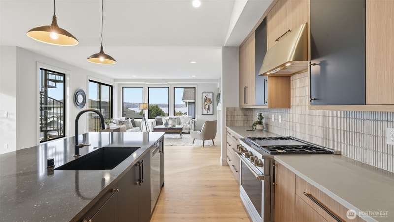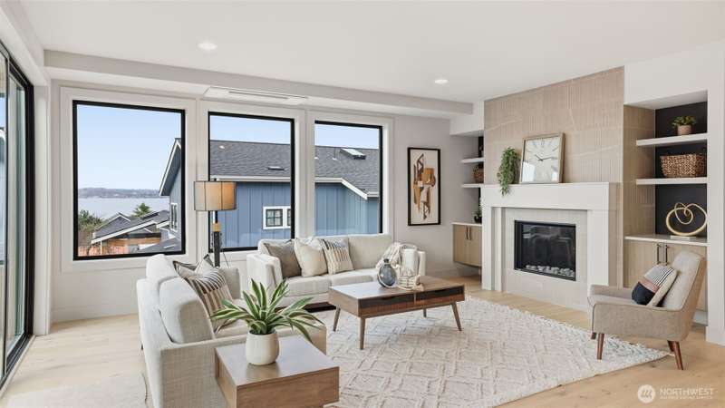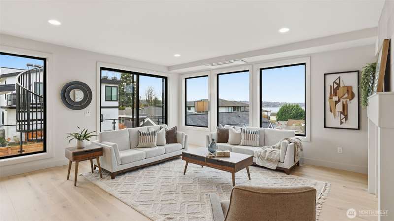 Avon Development presents a striking NW Contemporary in Lower Kennydale with panoramic views of Lake Washington and the Olympic Mountains. Vaulted ceilings and open living spaces flow into a chef’s kitchen and expansive rooftop deck—ideal for entertaining or quiet mornings. The luxe primary suite features a spa-style bath and custom walk-in closet, while additional en-suite bedrooms offer guest comfort. Enjoy A/C, a fenced yard, pre-built elevator shaft, and 3-car garage. Nestled near trails, bike paths, and waterfront parks, this home blends modern design with an exceptional lifestyle.