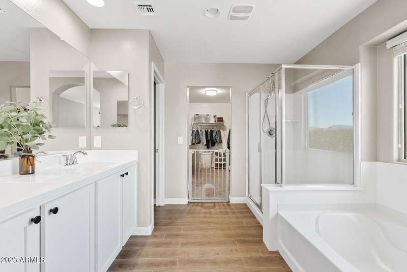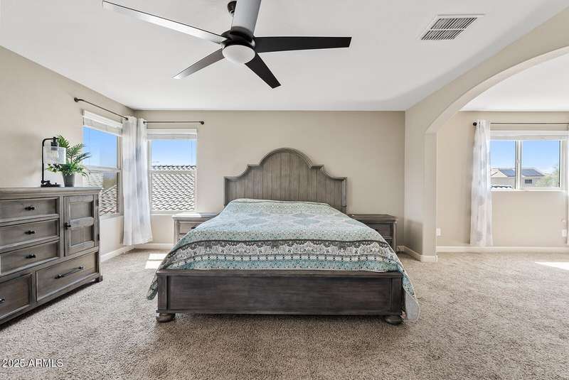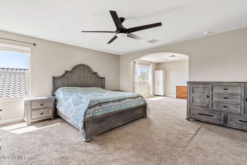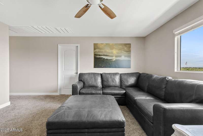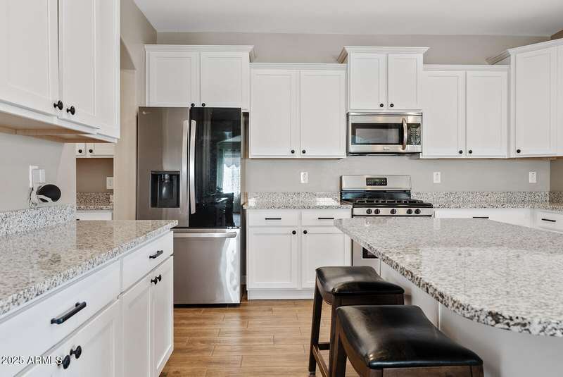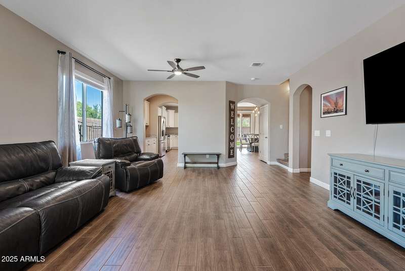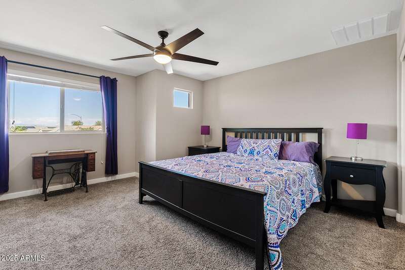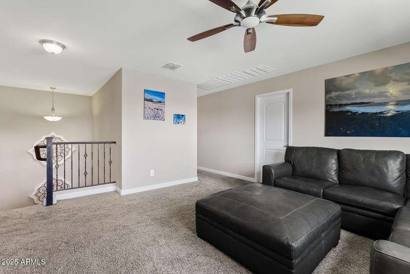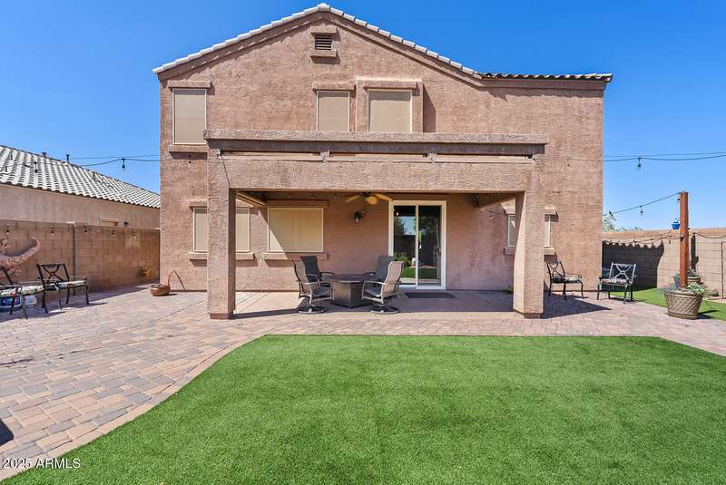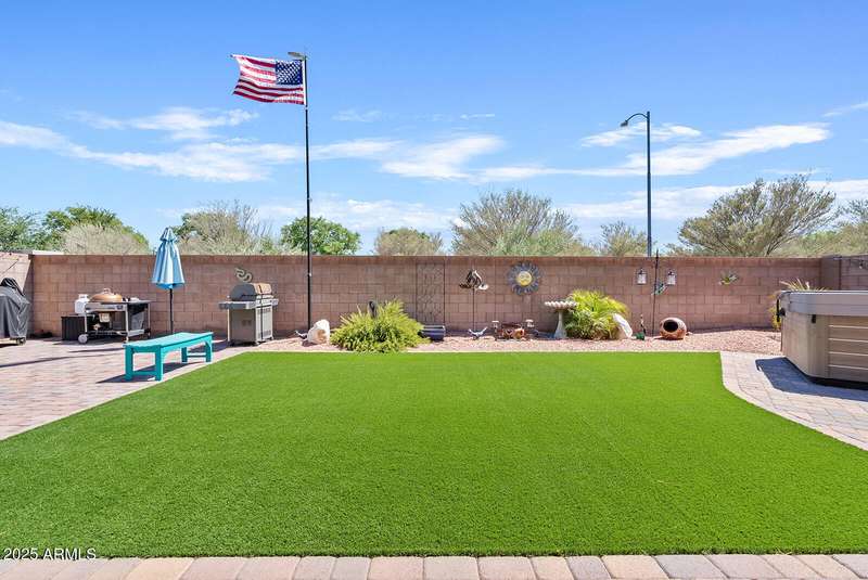Welcome to this beautifully maintained 4-bed, 2.5-bath home on a premium corner lot and a large grassy area next door for added space and privacy. Inside, enjoy light-filled living areas, wood-look tile, neutral paint. The kitchen features granite counters, white cabinets, stainless appliances, a butler's area, and center island with breakfast bar. Upstairs offers a flexible loft and an OVERSIZED primary suite with a sitting area, dual sinks, and walk-in closet. Step outside to a low-maintenance turf backyard with a covered patio perfect for relaxing or play or to enjoy the hot tub! Bonus: an oversized garage offers extra storage and room for toys.