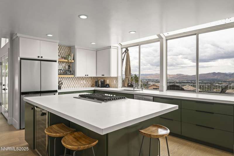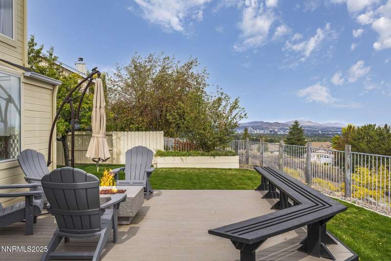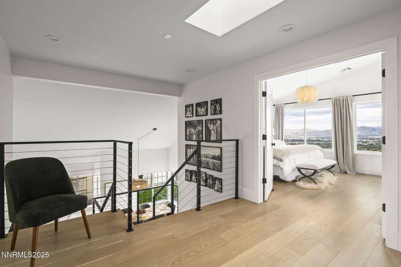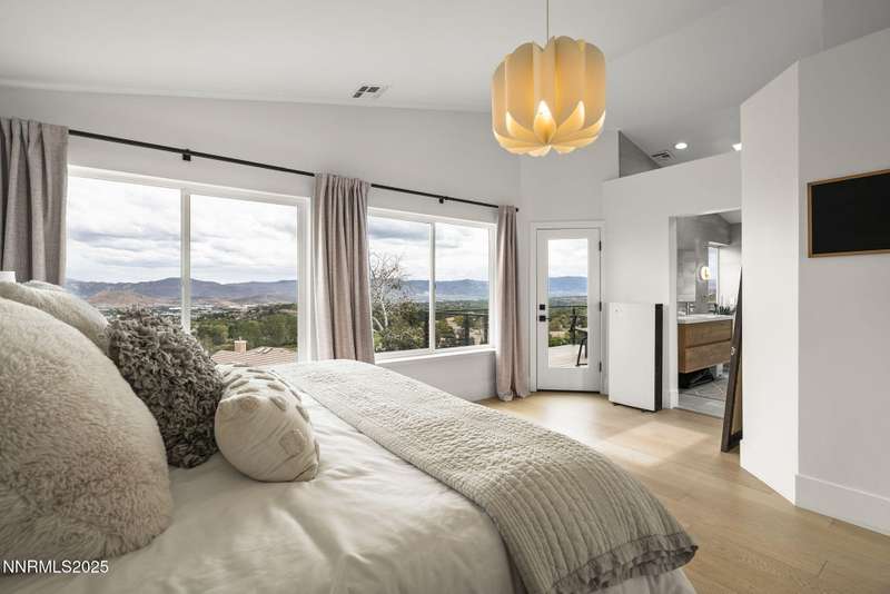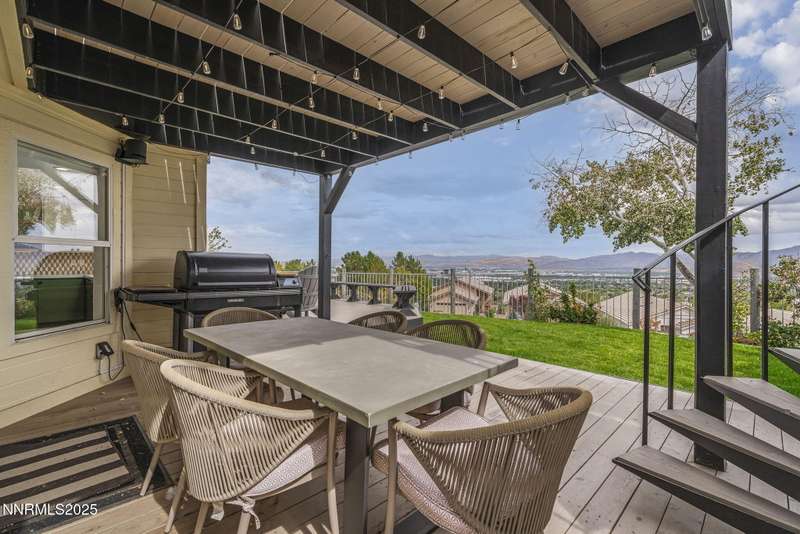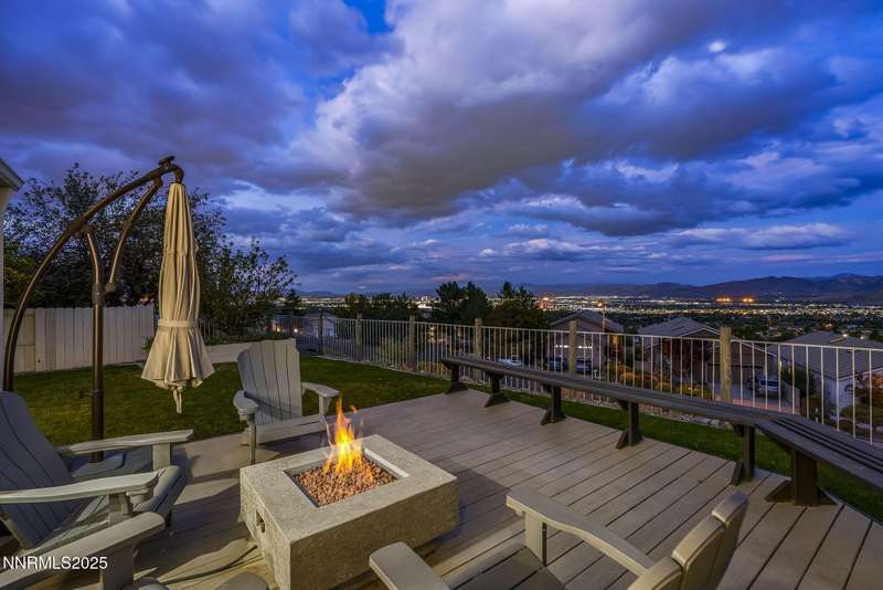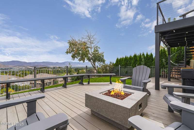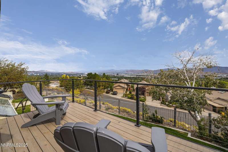 Completely remodeled and upgraded home in Lakeridge Springs, perched above Lake Stanley and hole #14 of the Lakeridge Golf Course. The panoramic views of the valley, Downtown Reno, golf course and eastern foothills are truly priceless. Throughout the entire home is light oak engineered hardwood flooring and a recent refinishing of all interior walls with a smooth texture. The custom designed kitchen is highlighted by ample amounts of high-end cabinetry, Quartz counter tops, double oven, wine fridge, gas cook top and a large bay window that brings the beautiful views into the home. The master bedroom provides the peak experience of the views from inside and outside on the balcony. The master bathroom has floor-to-ceiling Italian tile, high-end spa shower, floating vanity and walk-in closet with built-ins. Both the interior staircase and balcony have been upgraded with steel and cable railings. Other notable features include; recently repainted and refinished deck and balcony, 3 car garage, custom built-in bar with a fridge, upgraded guest bathroom, new AC and the furnace is 2 yrs old. The HOA provides a pool, tennis courts, playground area and beautiful park.