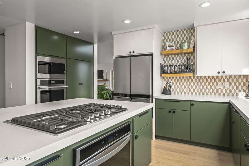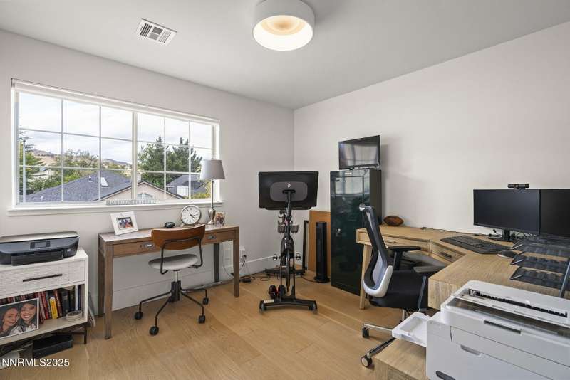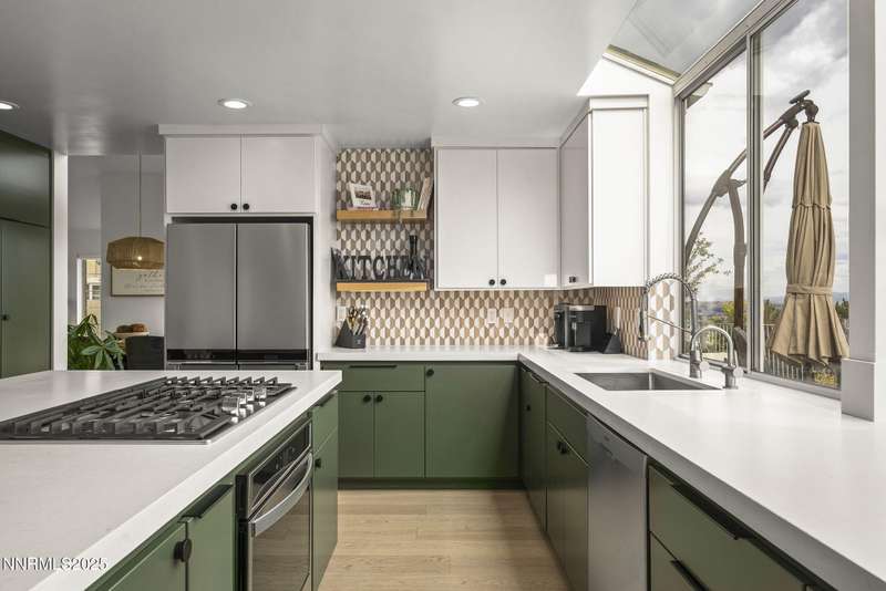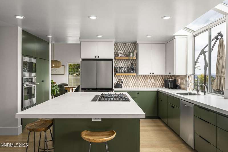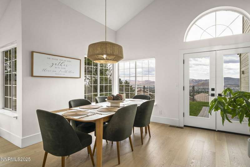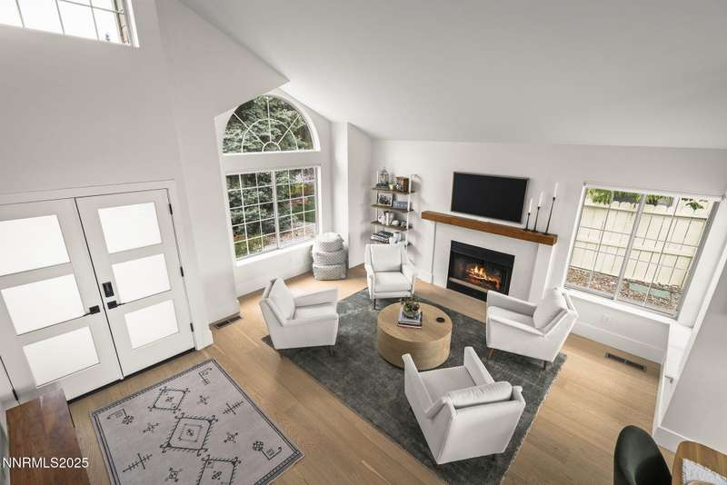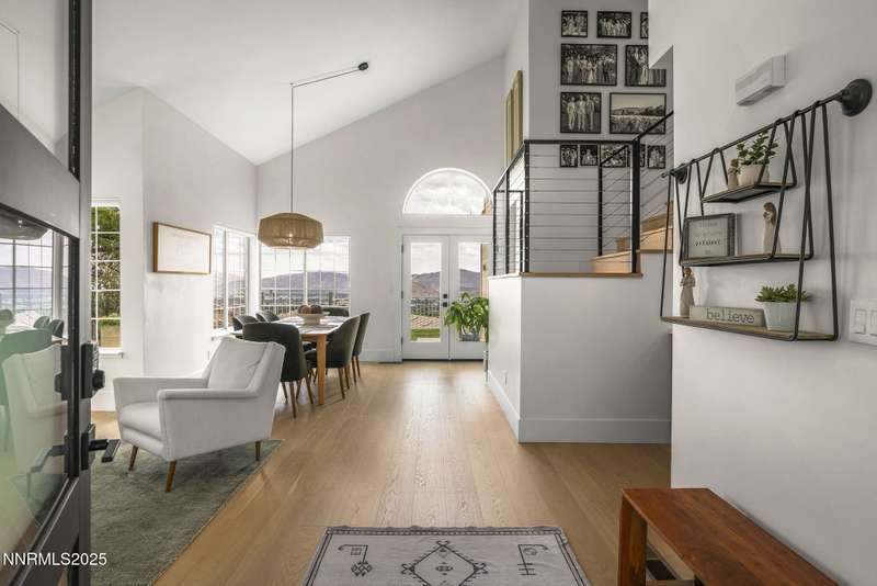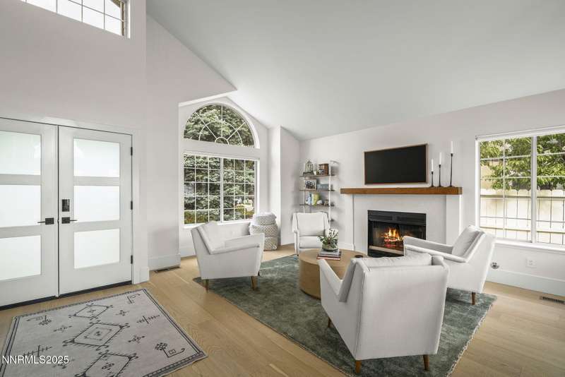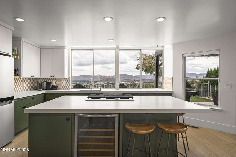 Completely remodeled and upgraded home in Lakeridge Springs, perched above Lake Stanley and hole #14 of the Lakeridge Golf Course. The panoramic views of the valley, Downtown Reno, golf course and eastern foothills are truly priceless. Throughout the entire home is light oak engineered hardwood flooring and a recent refinishing of all interior walls with a smooth texture. The custom designed kitchen is highlighted by ample amounts of high-end cabinetry, Quartz counter tops, double oven, wine fridge, gas cook top and a large bay window that brings the beautiful views into the home. The master bedroom provides the peak experience of the views from inside and outside on the balcony. The master bathroom has floor-to-ceiling Italian tile, high-end spa shower, floating vanity and walk-in closet with built-ins. Both the interior staircase and balcony have been upgraded with steel and cable railings. Other notable features include; recently repainted and refinished deck and balcony, 3 car garage, custom built-in bar with a fridge, upgraded guest bathroom, new AC and the furnace is 2 yrs old. The HOA provides a pool, tennis courts, playground area and beautiful park.