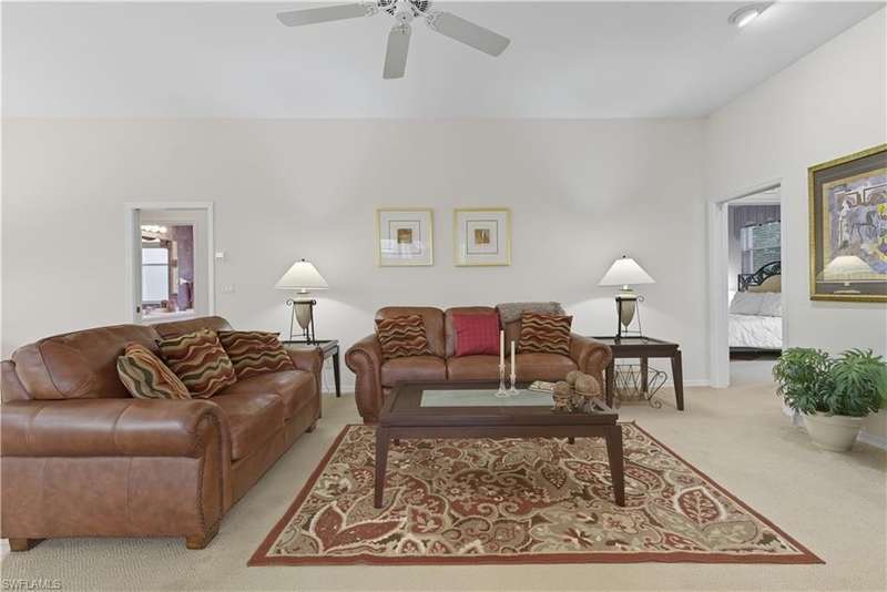 Charming house in desirable Pelican Landing. Perfect for a seasonal tenant looking for a serene getaway. This meticulously maintained property offers 3 bedrooms, den, 3 bathrooms, 2 car garage and pool. Step into a bright and airy living space that encourages relaxation and connection. The open concept layout is ideal for entertaining, allowing you to easily interact with family and friends while enjoying the inviting ambiance. The heart of this home is the fully equipped kitchen featuring a center island, perfect for meal prep and casual dining. With ample counter space for a cooking is a delight. Family room, morning room and kitchen open into one fabulous space. There is a formal living room and dining for 6 for entertaining. Primary bedroom with king bed, a flat-screen TV for your entertainment, and a walk-in closet, this sanctuary also includes a ensuite bathroom equipped with a soaking tub and a walk-in shower. This residence boasts two additional guest bedrooms thoughtfully designed for comfort. One guest room features two twin beds, while the other showcases a cozy queen bed. Two guest bathroom ensures convenience for all, while the den includes a sleeper sofa, making it an ideal space for additional guests or family. Step outside to your private backyard paradise, complete with a sparkling pool that invites you to unwind under the sun. spacious under cover living area with table and sitting area. This home comes with all the modern conveniences you need, including a laundry room for added ease, high-speed WiFi to stay connected, and bicycles for exploring the beautiful surroundings. Living in Pelican Landing offers an unparalleled lifestyle of leisure and recreation. Enjoy exclusive access to a variety of amenities, including: a watercraft shuttle to the beach Seven days a week...The beach is located on 34 acres at the northern tip of Big Hickory Island. Community Center with state of the art fitness, pickle ball, bocce, Tennis center includes a pro shop and 12 Har-tru lighted tennis courts. Located close to dining, shopping and entertainment, and offers easy access to US 41/Tamiami Trl and I-75. Quick access to Naples, the Southwest Florida International Airport (RSW).
