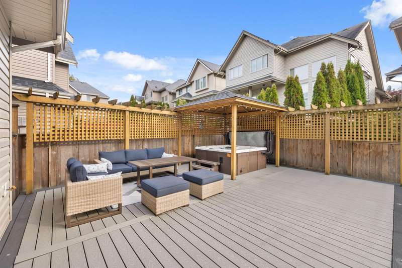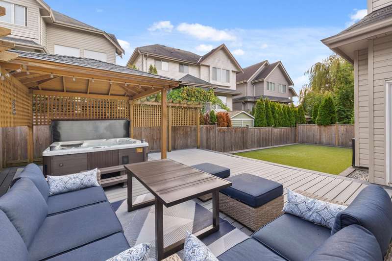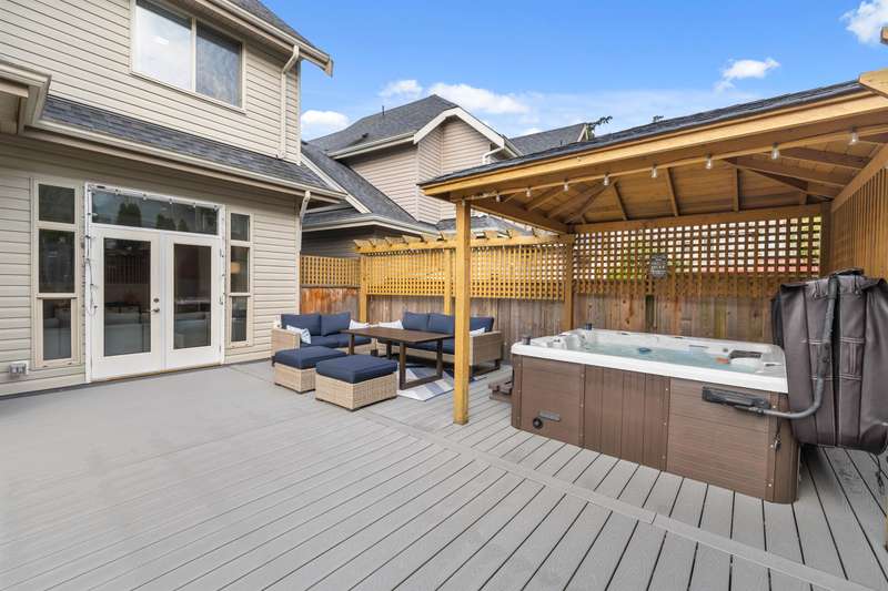 Welcome to Westridge Estates — a European-built 2-storey with a finished 2-bedroom basement suite on a quiet cul-de-sac in one of Cloverdale’s most sought-after locations. Main floor features 10-ft ceilings, hardwood floors, maple kitchen with island, and family room with updated fireplace. French doors open to a huge composite deck, artificial turf, and covered gazebo with hot tub — $70,000+ in upgrades. Upstairs: 4 bedrooms, including primary with vaulted ceilings & 5-pc ensuite. Basement suite has separate laundry & entry. New appliances & hot water tank. Move-in-ready with style, comfort, and income potential.