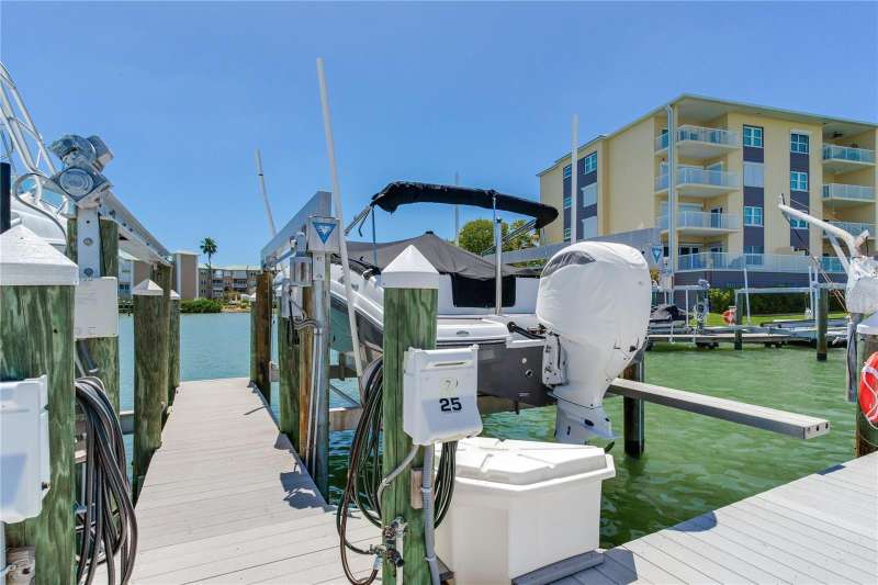WATERFRONT LUXURY LIVING | 3 BEDROOM CONDO WITH BOAT SLIP, LIFT & PRIVATE GARAGE INCOME PRODUCING Discover your dream coastal lifestyle in this stunning 3-bedroom, 2-bathroom corner condo in the prestigious waterfront community of Snug Harbour. Boasting 1,825 sq ft of well-designed living space, this residence includes a private oversized 1-car garage and deeded boat slip with a 13,000 lb lift (brand new boat lift controller installed May 2025), offering the perfect blend of comfort, convenience, and coastal elegance. Step inside to a bright, open-concept layout ideal for entertaining or family living. The expansive great room features 9 ft ceilings, abundant natural light, and a wall of sliding glass doors that open to a spacious balcony with tranquil water views. The chef’s kitchen is a culinary delight with wrap-around granite countertops, breakfast bar, extensive cabinetry, a closet pantry, and open sightlines to the living area and beyond. The huge master suite offers a peaceful retreat with water views, his-and-her walk-in closets, and a luxurious en suite bath complete with soaking tub, separate shower, and dual vanities. Two additional guest bedrooms are generously sized and share a beautifully appointed full bath. A large laundry room adds to the home’s functional layout. Enjoy Florida waterfront living to the fullest with your private boat slip, equipped with water, power, and a 13,000 lb boat lift—just steps from your door. Brand new HVAC system installed August 2025. Store your beach gear, kayaks, or bikes in your private garage, and spend sunny afternoons at the community pool or walking to the nearby beach, restaurants, and shops.Located in the heart of Madeira Beach and just 40 minutes from Tampa International Airport, this exceptional condo offers the best of coastal living in a secure, upscale setting.