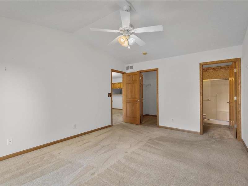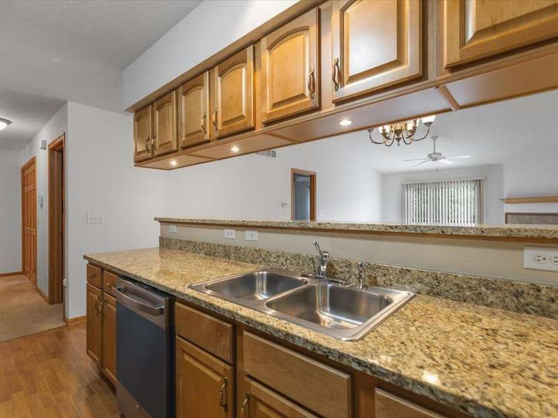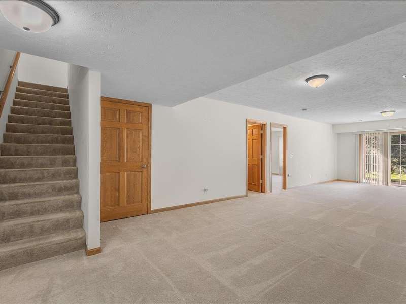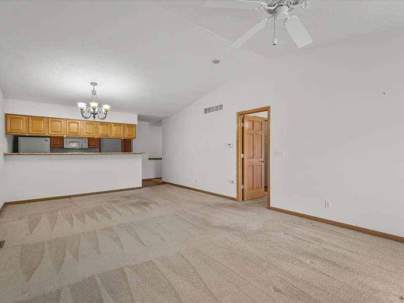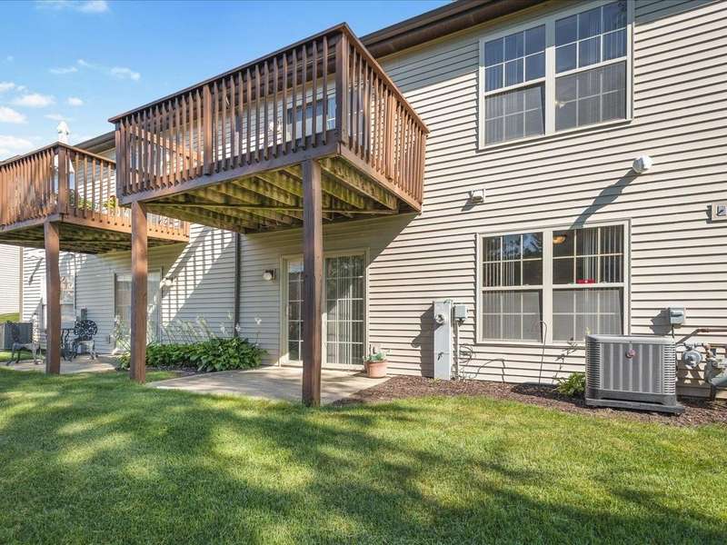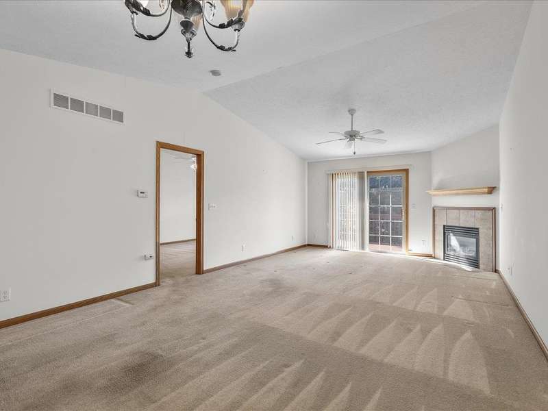 Charming ranch-style condo with full exposure. Everything you need on the main level. Inviting entry to open plan with cathedral ceilings. Maple kitchen cabinets, granite counters, and upgraded lighting. Living/dining area with corner fireplace, slider to composite deck. Primary bedroom with ensuite and walk-in closet. Main floor laundry for convenience. Finished lower level family room with slider to patio, bedroom has walk-in closet, and full bathroom. Ideal privacy for guests. Convenient location.