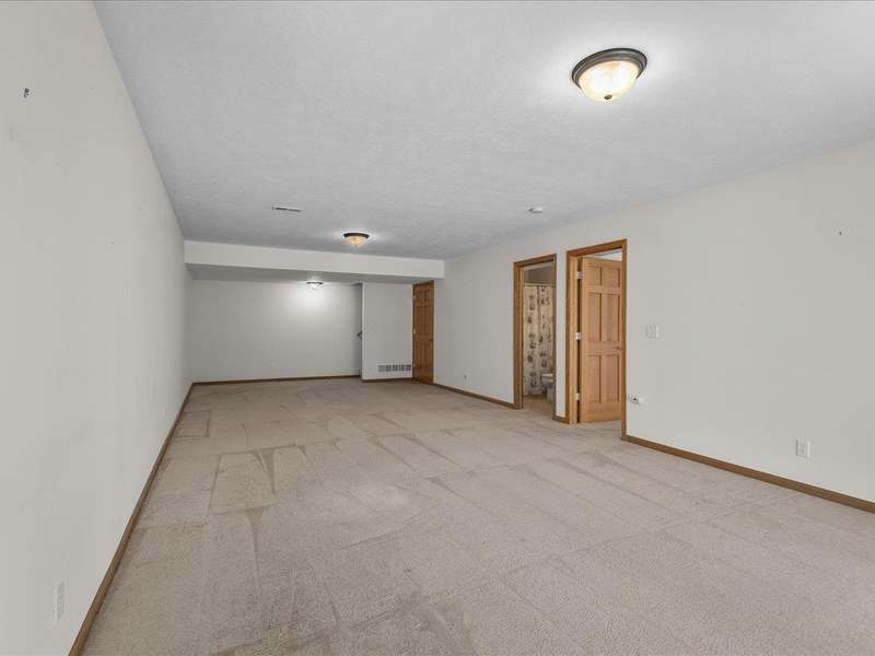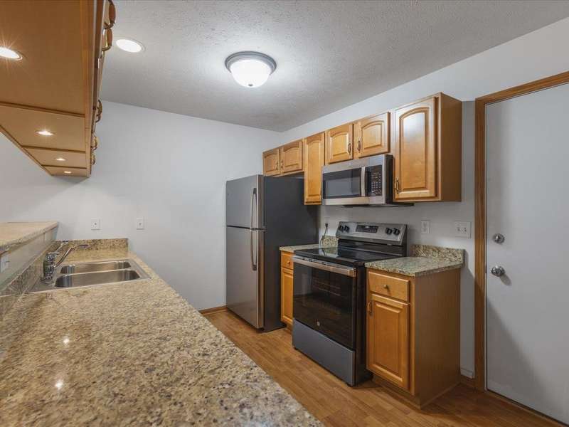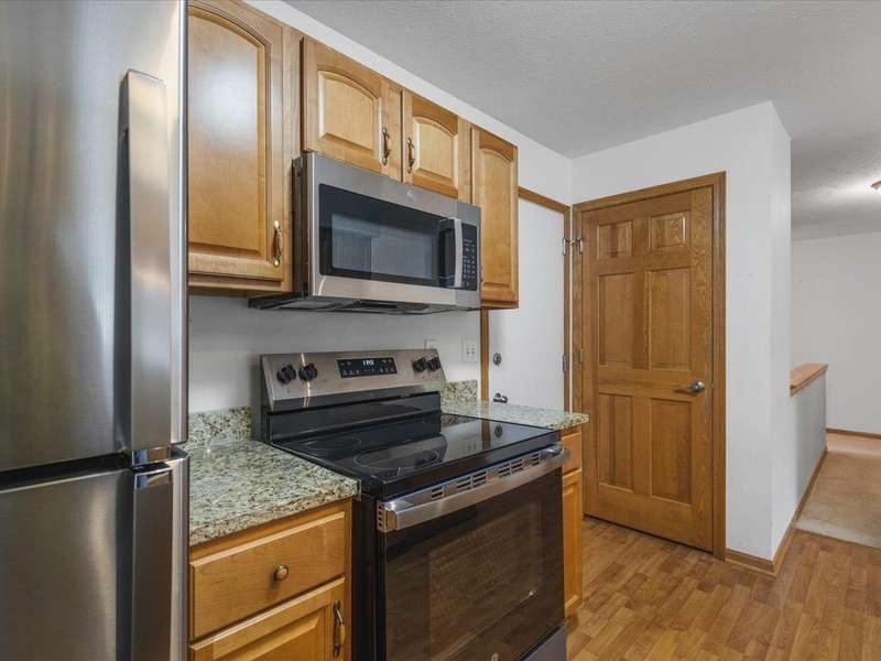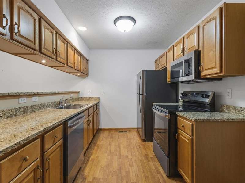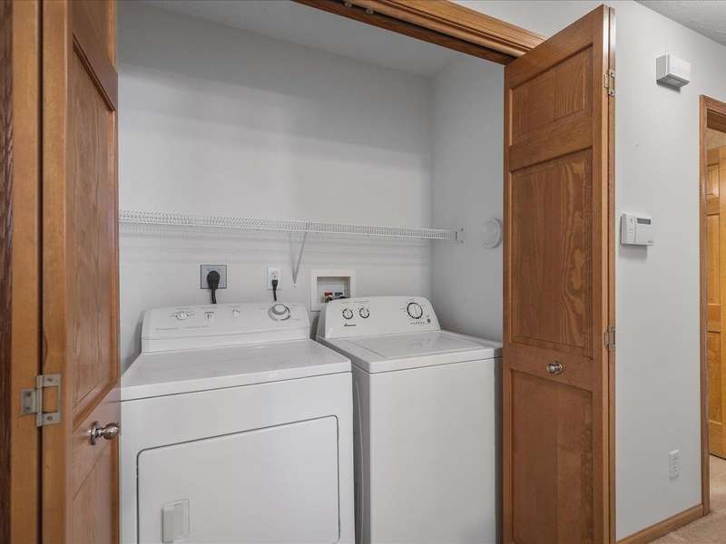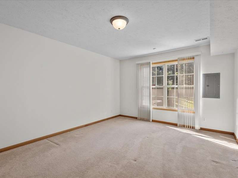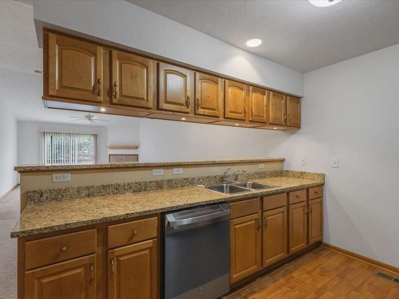 Charming ranch-style condo with full exposure. Everything you need on the main level. Inviting entry to open plan with cathedral ceilings. Maple kitchen cabinets, granite counters, and upgraded lighting. Living/dining area with corner fireplace, slider to composite deck. Primary bedroom with ensuite and walk-in closet. Main floor laundry for convenience. Finished lower level family room with slider to patio, bedroom has walk-in closet, and full bathroom. Ideal privacy for guests. Convenient location.