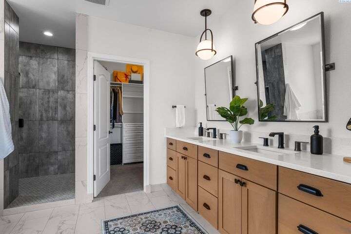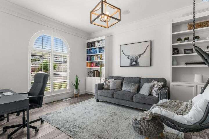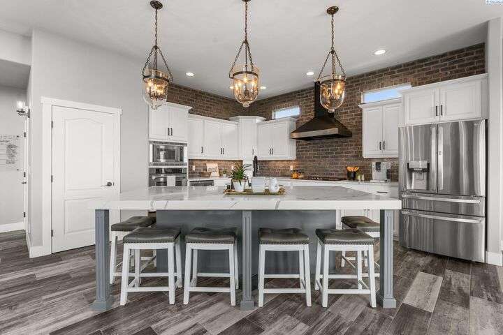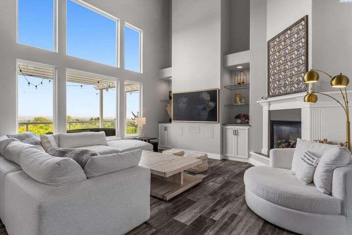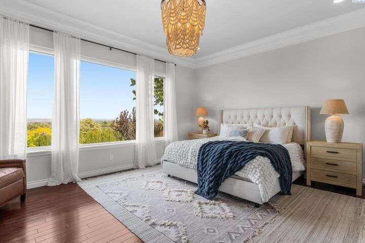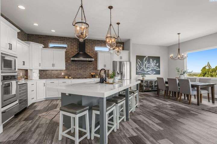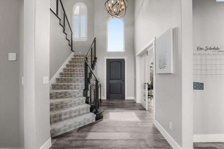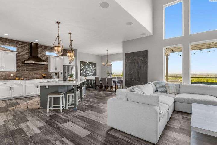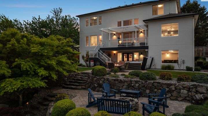 MLS# 287750 Welcome to your dream home in the highly sought-after inspiration Estates, offering over 5,000 sq ft of luxurious living space on a beautifully landscaped 1/3-acre lot. This stunning property boasts panoramic views and breathtaking sunsets you can enjoy from multiple vantage points, including the expansive upper deck and walk-out basement patio. Step inside to soaring ceilings and an inviting entryway that opens to a spacious home office featuring custom built-in shelving. The main level's open-concept design seamlessly connects the expansive family room and updates kitchen and dining area. The kitchen features modern finishes, ample storage, and easy access to the deck for outdoor dining and relaxation. Retreat to the luxurious main-level primary suite, complete with spa-like bathroom, soaking tub, dual vanities, and a large walk-in closet. Upstairs, you'll find a junior suite with private bath, two additional generously sized bedrooms, a full bath and a large bonus room- Ideal as a media room, playroom, or even a fifth bedroom. Downstairs is an entertainer's paradise. The spacious rec room is perfect for pool, cards, and casual gatherings. Wine enthusiasts will love the custom climate-controlled wine cellar-Ideal for storing and showcasing a prized collection. A large storage area offers extra storage and a convenient place for that home gym. Step outside to your backyard oasis featuring a covered patio, hot tub, outdoor kitchen, fire pit area, and a personal putting green. This home offers luxury comfort, and room to live, work, and play-all in one of the area's most desirable neighborhoods.