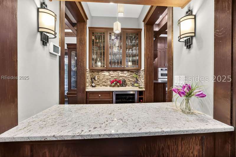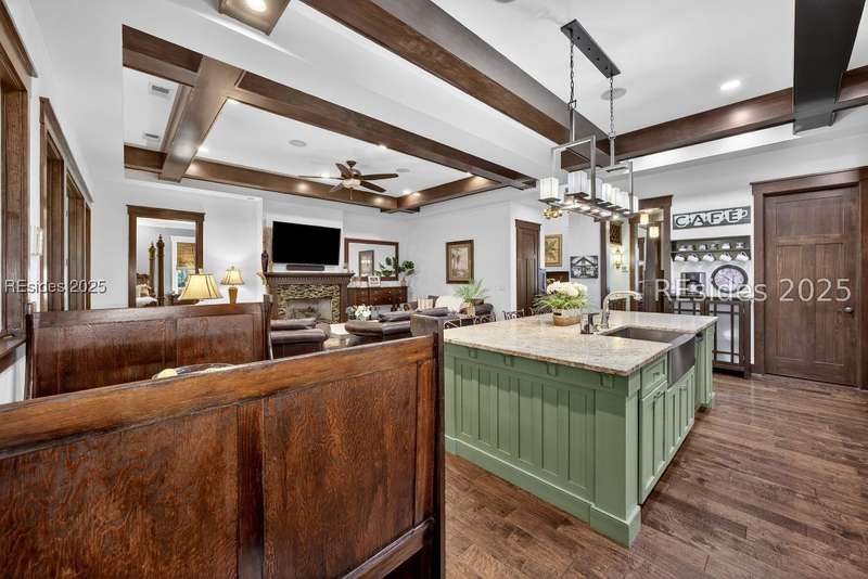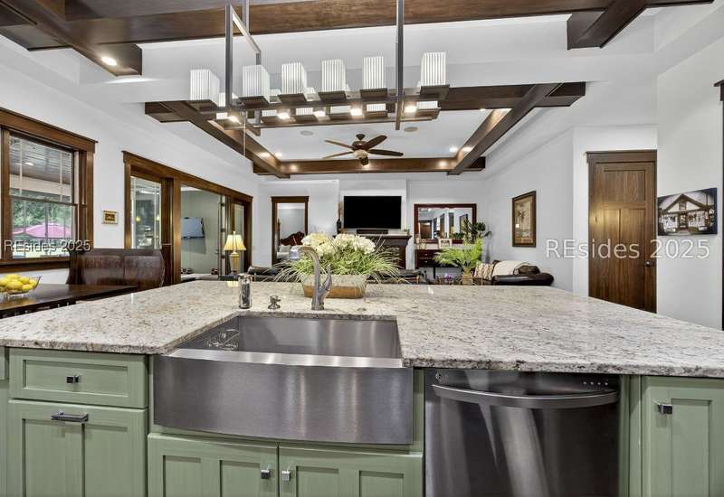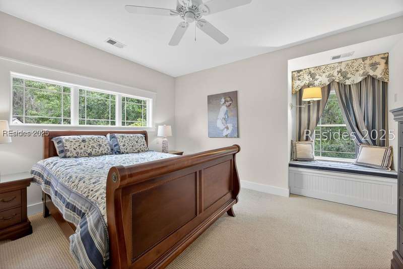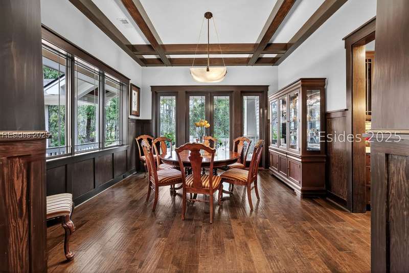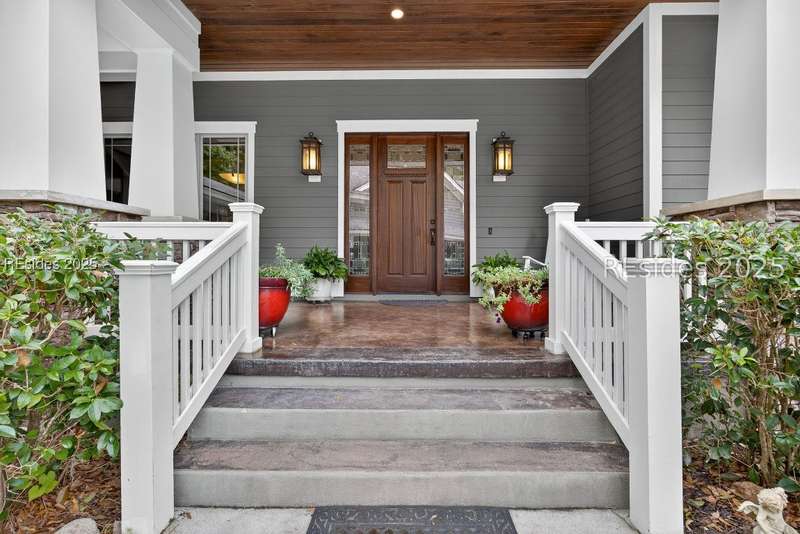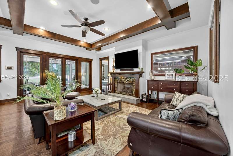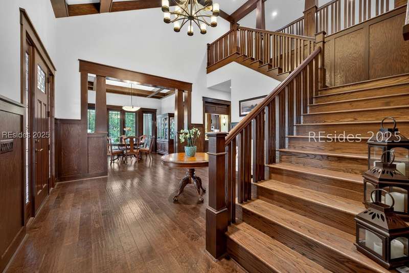 A first time offering for this one-of-a-kind, custom built home in Hampton Hall. This craftsman style masterpiece offers wonderful details and high-end finishes at every turn and is situated on one of the most private and scenic golf view homesites in the community. As you travel down the long drive, canopied by beautiful trees, you know you're in for something special. 4 BRs & 3.5BAs in the main house accompanied by a home office, a spectacular laundry room, formal & casual dining rooms, a bunk room, and large bonus room that leads to the second story covered golfer's porch. The master suite is on the main level and boasts a Lighthouse Award winning master bathroom. Through the covered breezeway to the 1100 sq/ft 3 car garage and you'll find a fabulous in-law suite complete an its own kitchen, bedroom, bath, and living space. This is a unique and special opportunity to purchase one of the finest homes in Bluffton's most popular community.