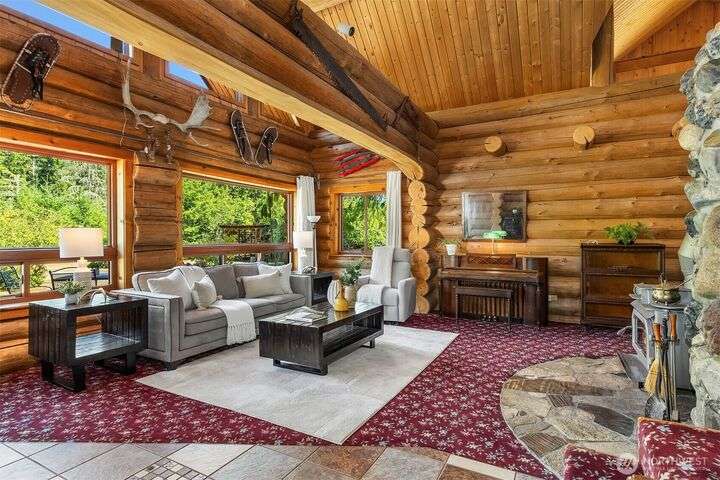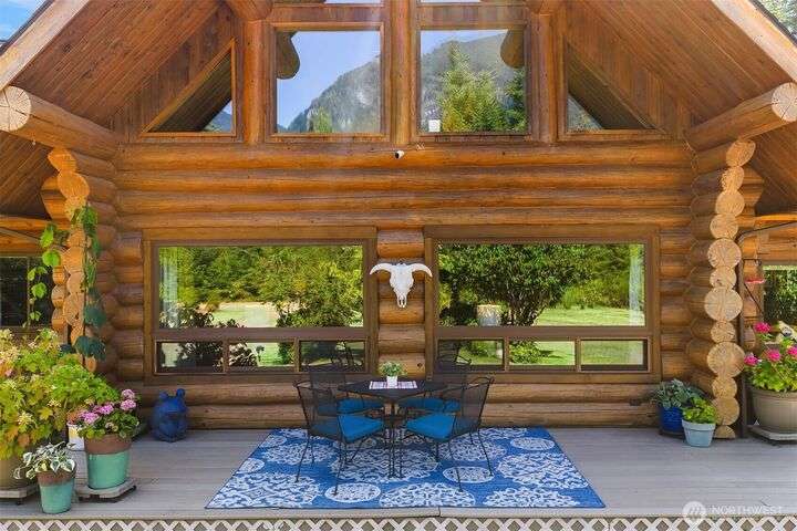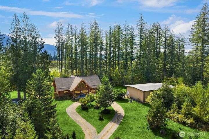 Improved Price! Welcome to your private oasis in the Skykomish Valley! Nestled on 20 peaceful acres, this [Custom-Built Log Home] offers rustic charm, timeless design & stunning mountain views from every window. Zoned R5 & subdividable, this property offers flexibility for future development or AirBnB/STR. The main level features the Primary Suite & 2nd bed, while upstairs you'll find a spacious loft, addl bed & a versatile game room—perfect for hosting or creative use. A soaring river rock fireplace anchors the vaulted great room, adding warmth & dramatic style. The 1,800 SqFt detached steel pole building (50'x36') boasts 200-amp service & 3 oversized 10'x12’ doors—ideal for motorhome, workshop &/or contractor's dream shop. Pre-inspected!