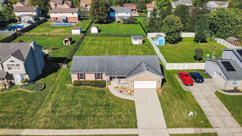 Newly Updated 3 Bed Brick Ranch in Weathered Oaks, Fresh Paint, Doors & LVP Floors Throughout. Main Living Area Features Open Floor Plan, Vaulted Ceilings & Gas Fireplace, Spacious Kitchen with Stainless Appliances. Additional 1000+ Sq Ft of Unfinished Basement Ready for Your Touches. Cozy Covered Front Porch with Concrete Patio Out Back that Overlooks Gorgeous Fenced Yard & Shed. Terrific Location Minutes from Liberty Township & Hamilton. Furnace/HVAC 2020, Don't Miss this One with Immediate Occupancy!