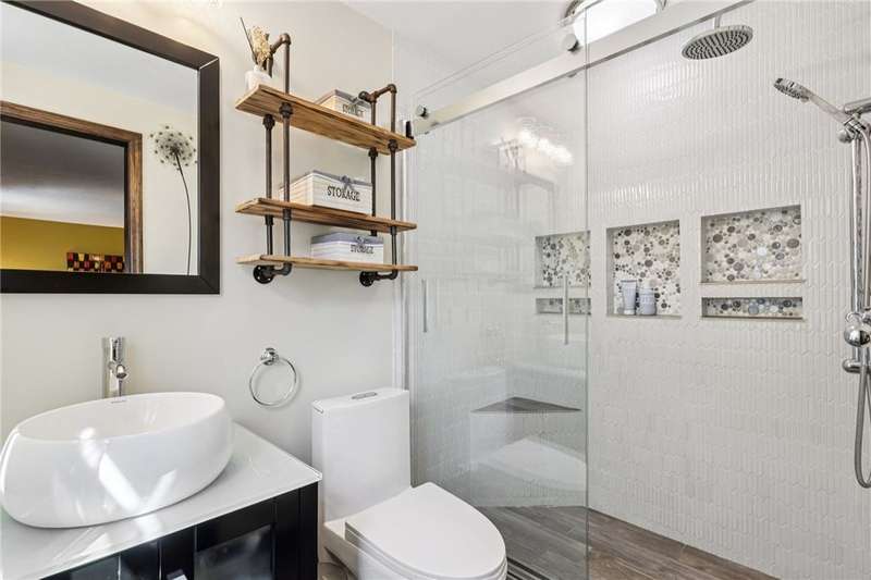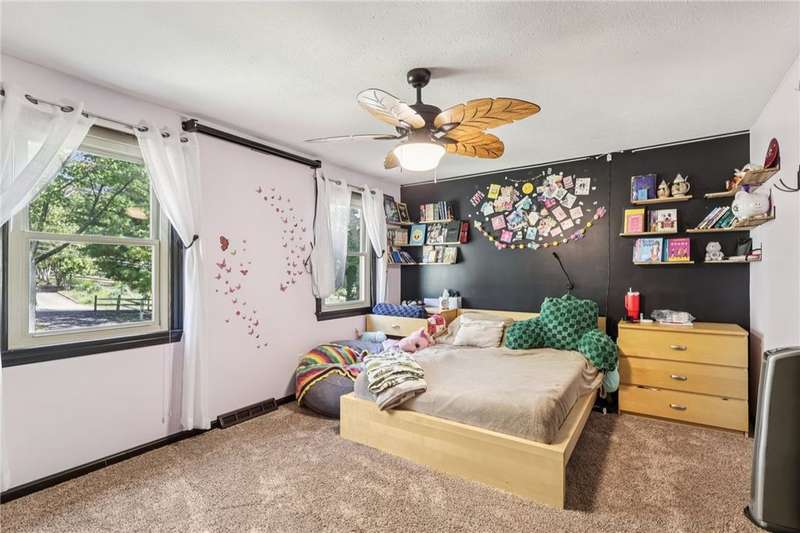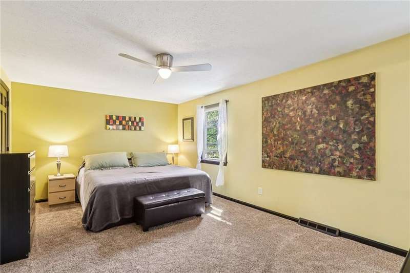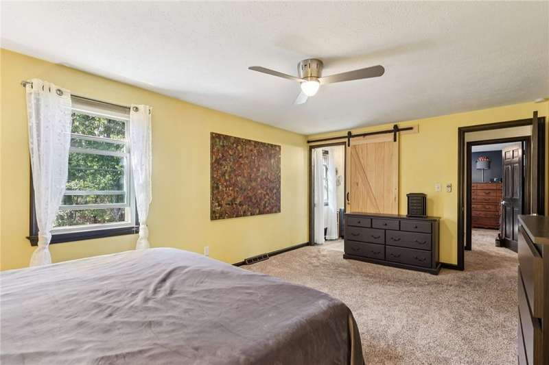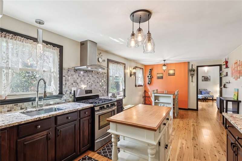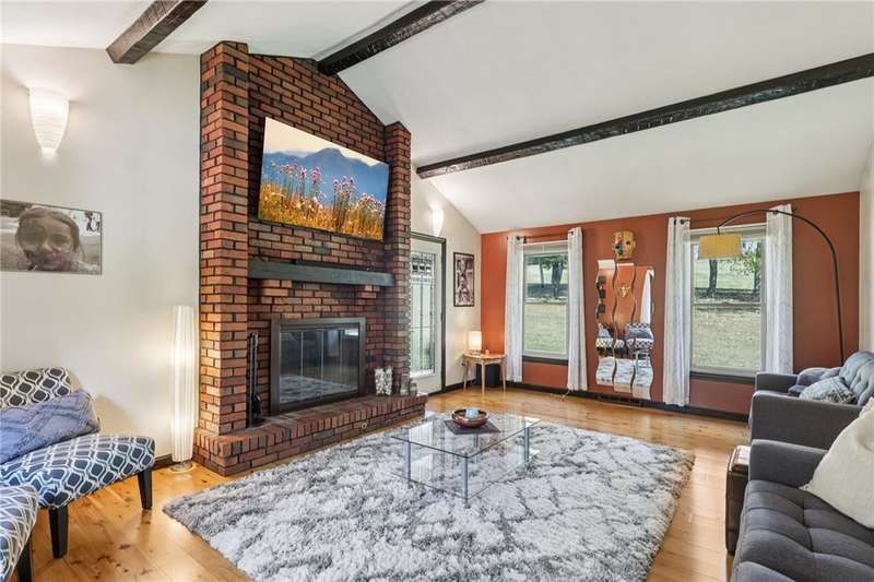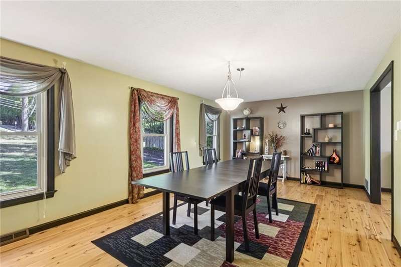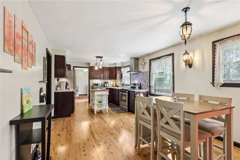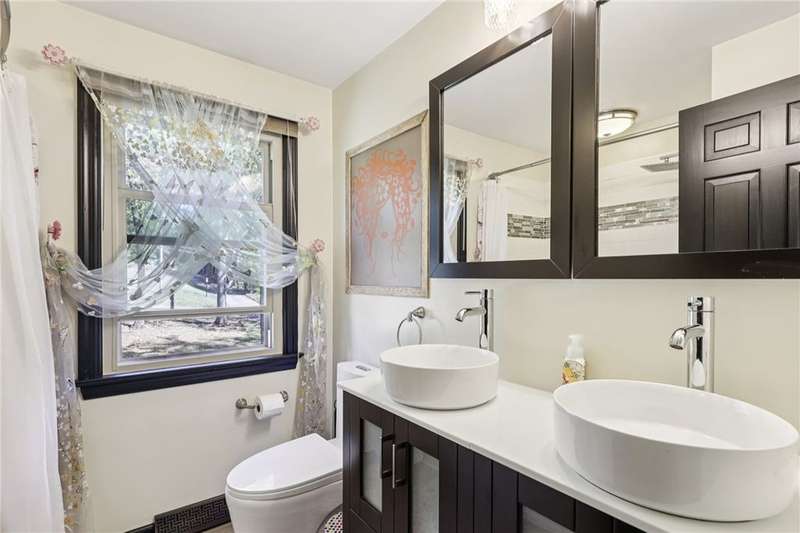 Parklike Setting! Charm meets Modern! Stunning foyer w/leaded glass door opens to hardwood floors & rich moldings. Spacious formal living room & dining room w/ bay window. Updated kitchen boasts stainless appliances, dark cabinetry, granite counters, tile backsplash & breakfast nook. Large family room features vaulted beamed ceiling, brick fireplace to the ceiling, bay window, & leaded glass door to covered side porch. First-floor powder room. Primary suite offers 2 closets & updated ensuite bath w/ barn door & walk-in shower. 3 add'l bedrooms & updated main bath w/European Flair featuring double vessel sinks & tub/shower combo. Finished lower-level game room w/ walkout to rear yard. Outdoor space includes firepit area & shed. Leaf guards on gutters! Fantastic location close to shopping, dining & major routes!
