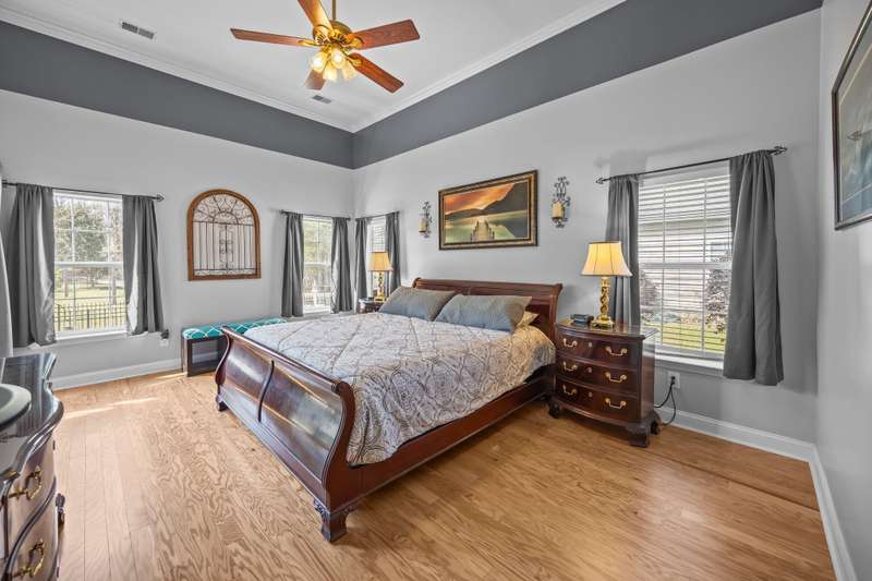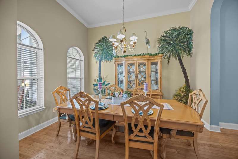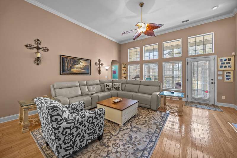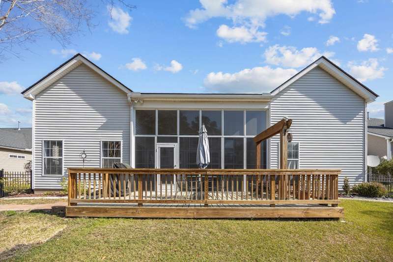 Welcome to 9394 Harroway Road, a stunning 1.5-story home featuring 4 bedrooms and 3.5 bathrooms in the highly sought-after Wescott Plantation. Built in 2002, this spacious residence offers 2,825 square feet of thoughtfully designed living space, featuring soaring 12-foot ceilings throughout the main areas, creating an open and airy atmosphere. Recent upgrades include beautiful engineered hardwood floors in all the bedrooms (installed in 2024), a new roof (installed in 2023), a new vinyl enclosure of the sunroom (installed in 2021), and a new HVAC system (installed in 2019), ensuring both comfort and modern appeal. Upon entering, you'll be greeted by a grand foyer that flows into a bright, open-concept living area, perfect for both entertaining and daily living.To the right of the foyer, you'll find a private office, offering an ideal space for work or study. The well-appointed kitchen boasts Quartz countertops, ample cabinetry, and a cozy breakfast nook. Adjacent to the kitchen, the formal dining room provides an ideal space for family gatherings and special occasions. The primary suite serves as a peaceful retreat, featuring a spacious bedroom, a walk-in closet, and an en-suite bath with dual vanities, a soaking tub, and a separate shower. Three additional bedrooms offer generous space and flexibility to suit a variety of needs, each featuring the newly added engineered hardwood floors. Set on a 0.22-acre lot, the property includes a large patio, irrigation system, and a fully fenced backyard, offering a tranquil outdoor space for relaxation and recreation. Residents of Wescott Plantation enjoy a wealth of community amenities, including a golf course, swimming pool, clubhouse, playground, and pickleball courts. Conveniently located near major highways, shopping, dining, and top-rated schools, this home combines comfort, style, and accessibility. Don't miss your chance to make 9394 Harroway Road your new home. Schedule a showing today!