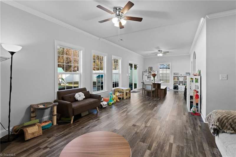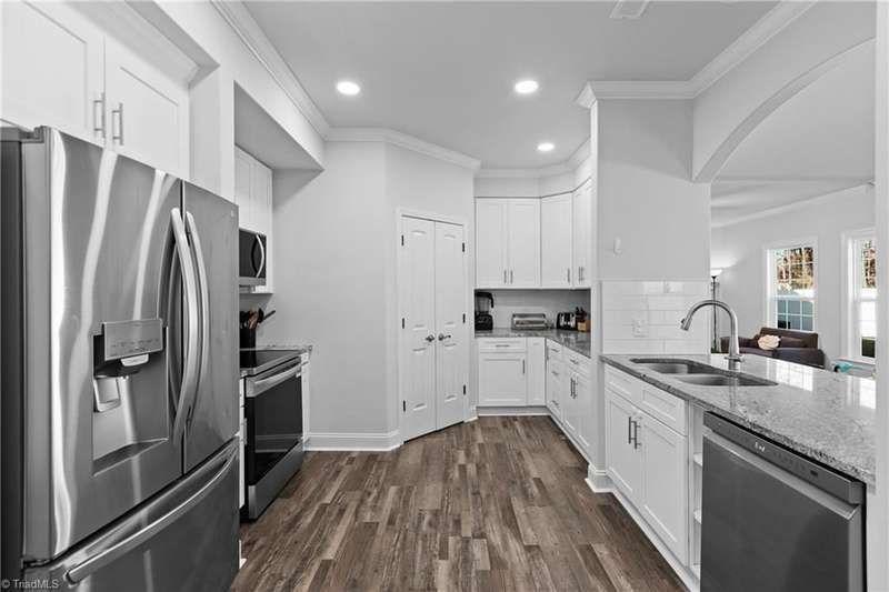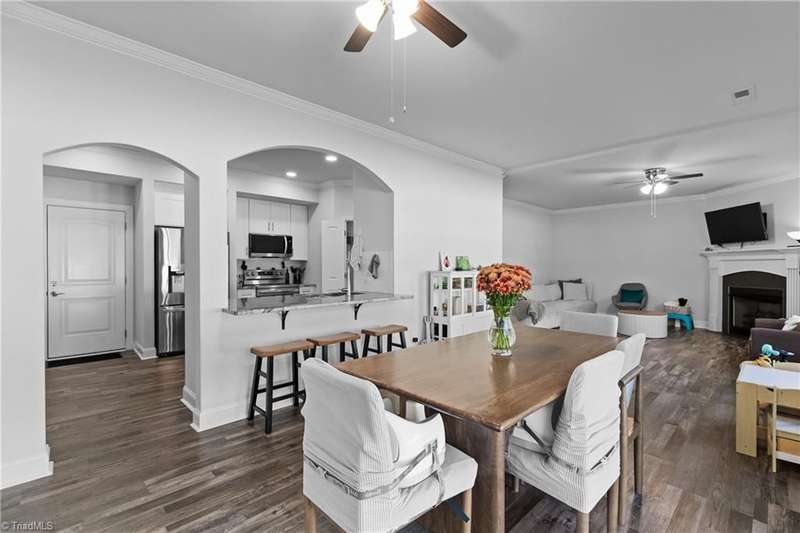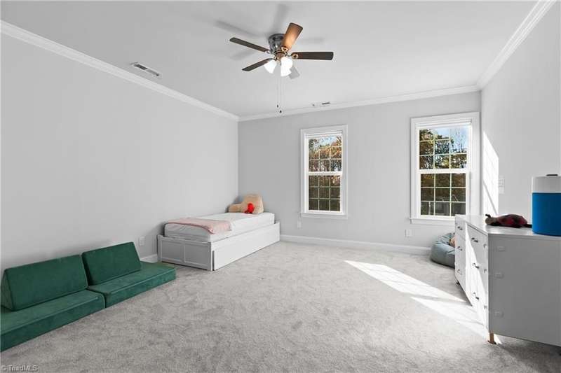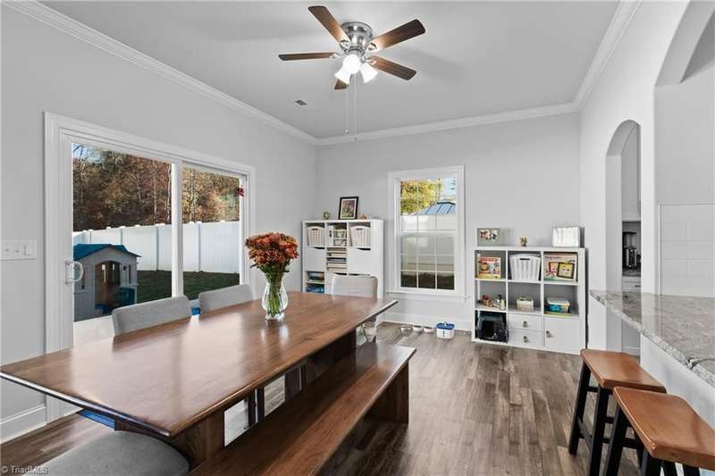 Sellers absolutely love the home but are relocating for work. This striking 5-bedroom, 3-full-bath home features 9' ceilings and crown molding throughout. Chef's kitchen with arched entryways and a large walk-in pantry can be yours by the holidays. Open floor plan featuring gas fireplace and all-white interior await your personal touch. Main level is carpet-free. First-floor bedroom ideal for guests or home office. Primary suite offers a soaking tub, separate shower, and double sinks. Exterior features include a 6' white vinyl privacy fence, oversized 15' x 27' patio, and swing set that conveys. Tankless water heater, quality construction and no HOA make this a holiday gift with your name on it. Located minutes from popular shopping, dining, and amenities in a sought after school district. You won't find this quality at this price anywhere else! This home may qualify for $20K in closing costs-ask me how!