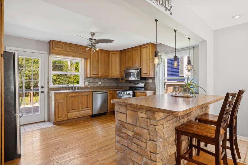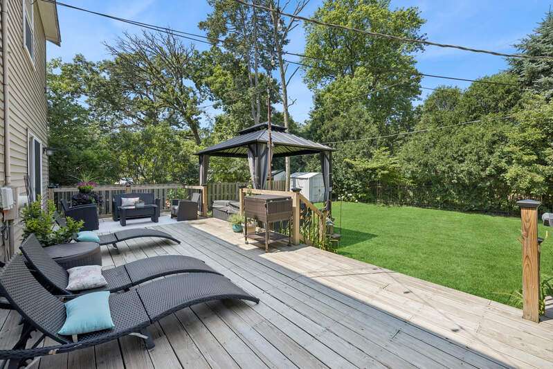 Live the coveted lakeside lifestyle just steps from the water-only 1.5 blocks away-and enjoy being moments from the vibrant Dole Arts Park and Crystal Lake Country Club. This beautifully updated home is perfectly situated in a prime location with access to the optional CCAPOA membership, which offers four private beaches, boat docks, and community events. Inside, the open-concept layout is filled with natural light and warm hardwood floors throughout. The kitchen features 42" oak cabinetry, stainless steel appliances, modern lighting, and a generous breakfast bar that seamlessly connects to the dining area-perfect for everyday living and entertaining. The main level includes a stylishly updated powder room and a convenient laundry area. Upstairs, the spacious primary suite impresses with a walk-in closet outfitted with custom built-ins and a fully remodeled, spa-inspired ensuite bath. Additional bedrooms are served by an updated hall bath with contemporary finishes. The expansive family room opens onto a newer deck complete with a hot tub and pergola, all overlooking a private, fenced backyard-ideal for relaxing or hosting guests. Recent updates include a freshly painted interior and exterior, central air system (2023), and a roof that's approximately 10 years young. This is a rare opportunity to own a move-in-ready home in one of the most desirable neighborhoods near the lake-don't miss it!