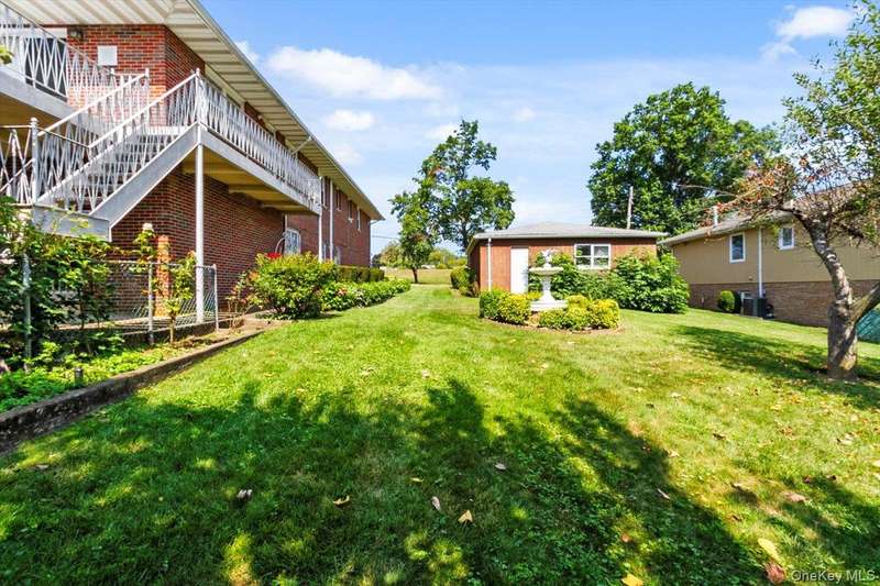 HOME is this beautiful 4-bedroom brick Raised Ranch in the sought-after Hearthstone area of Yonkers, offering exceptional space and flexible living options for large or extended families. A brick fireplace on each level adds to the coziness of this large home. Summer kitchen on lower level provides convenience when entertaining. The den/office on the lower level can be used as an additional bedroom, if wanted. A small basement room is a perfect space for a wine cellar, storage, or both. On the market for the first time by the original owner, the property combines two lots....a prime corner lot on Norwood and an adjacent lot on Croydon....into one double parcel. The sizable backyard with sprinkler system provides ample outdoor space. The two-car stand alone garage can provide more parking or be used for storage, workshop, etc. Perfectly situated near Central Avenue which offers a wide variety of restaurants, shopping, buses and access to major parkways. This home blends comfor