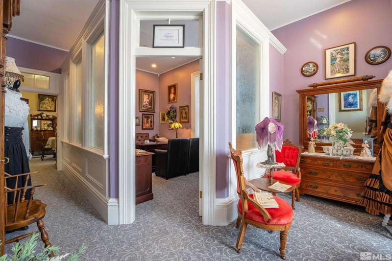 Zoned for both Residential and Commercial use. The Rinckel Mansion, one of Nevada's most cherished architectural landmarks, is a unique offering rich in legacy, craftsmanship, and cultural significance. Built in 1876 and expertly restored, this High Victorian masterpiece was designed by a French-trained architect for the original owner a pioneer merchant. The mansion is constructed with hand-selected materials sourced from Carson Valley, Lake Tahoe, and the Nevada State Prison quarry, showcasing timeless quality and European artistry., Centrally located in Carson City's historic district-just one block from the Nevada State Capitol and downtown-the property provides unmatched access to state and city offices, shopping, dining, parks, schools, and essential services. With ample on-site parking, it is ideally suited for residential, commercial, or event use. The professionally maintained grounds are beautifully enclosed with wrought iron fencing, enhancing both security and aesthetic appeal. An elegant outdoor patio area, flanked by two pergolas, offers the perfect setting for entertaining or hosting intimate gatherings. Every detail of this estate tells a story, from the hand-painted murals and original light fixtures to the 24-karat gold detailing and imported antique furnishings. Offered fully furnished-including vintage d?cor, heirloom linens, and a grand event tent-this property is more than just a home; it is a living piece of Nevada history, ready to be preserved and celebrated by its next steward.