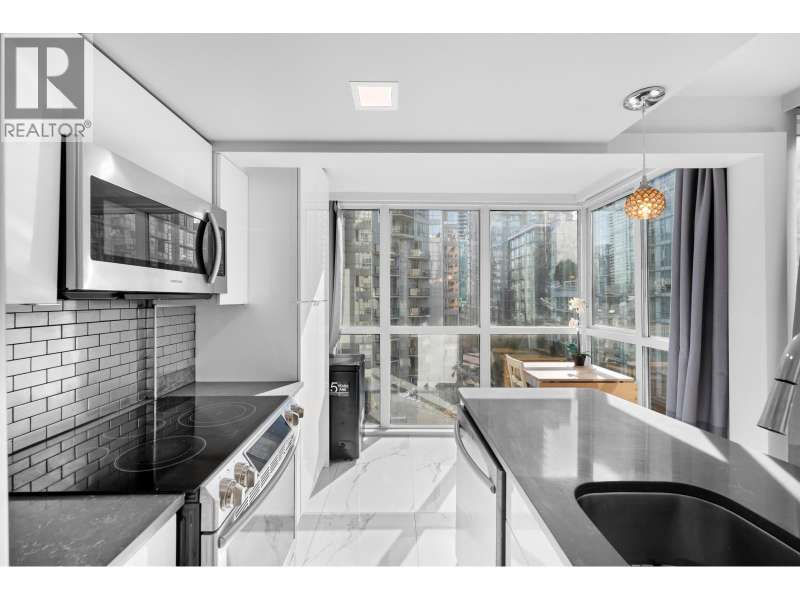 Updated 1-bed, 1-bath corner unit in the heart of Downtown offers 550 Sq.ft of modern living. Enjoy a bright open-concept layout with city views. The kitchen boasts custom cabinetry, stainless steel appliances and quarts counter tops for a sleek contemporary design. Spa-inspired bathroom featuring heated floors, glass shower and elegant tile work. The building offers owners ample amenities, including a pool & hot tub, gym, bike room and garden. Perfectly situated in the vibrant urban center of the city, you're just steps away from shopping, dining, the seawall, transit and more. Includes 1 parking spot and Locker. Don´t miss out schedule your viewing today! (id:58403)