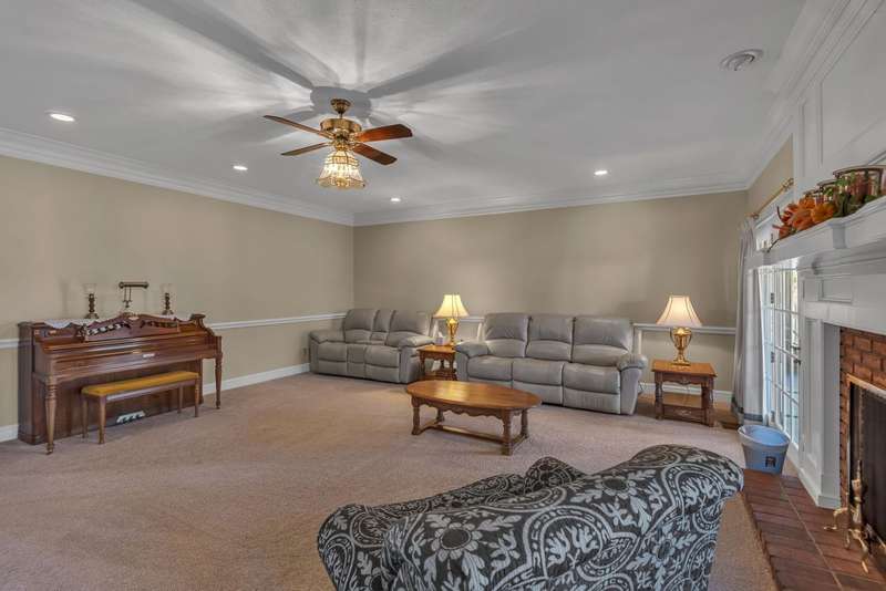 This stunning brick ranch home, situated on a spacious 2.15-acre corner lot, offers both comfort and functionality with its expansive layout and inviting features. Boasting 4 generously sized bedrooms, each with walk-in closets, and 3.5 beautifully appointed bathrooms, this home is designed for modern living. The finished basement could easily be transformed into in-law quarters, providing additional privacy and space. A two-car garage and a fenced area perfect for children or pets add to the home's practicality. The formal dining room and grand entrance foyer set the tone for the open and airy great room, which is centered around a cozy fireplace. The kitchen is a chef's dream, featuring an abundance of cabinetry, a large island, built-in stainless steel appliances, a pantry, and a charming breakfast nook. Recent upgrades, including fresh paint, new plank flooring, and sleek quartz countertops, add to the home's appeal. With two fireplaces, a heated and cooled Florida room, and a circular driveway, this home offers both elegance and comfort. The large utility room, complete with a wet sink, provides added convenience. Outside, a covered porch and expansive patio overlook the lush, manicured lawn, perfect for relaxing or entertaining. Plenty of storage space completes this perfect family home.