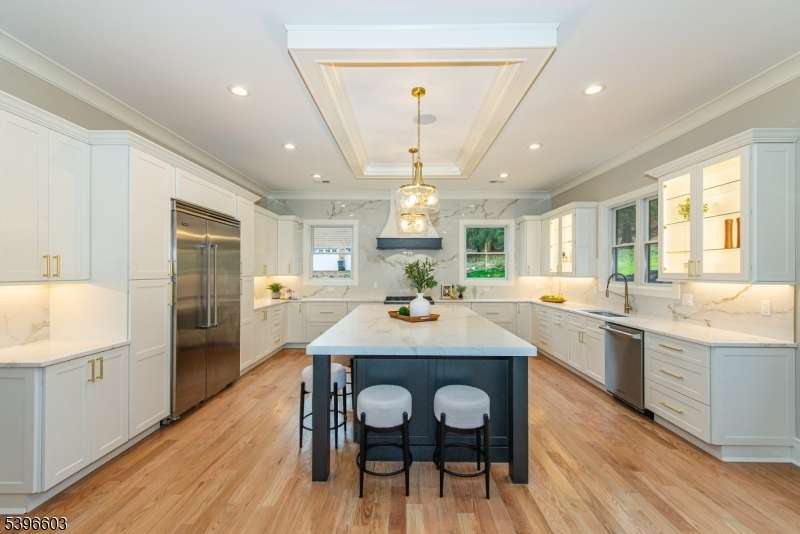 Experience elevated living at 24 Cliffside Drive, Livingston, an exquisite new construction estate spanning approximately 6,500 sq ft of refined design and craftsmanship.This 5-bedroom, 6.5-bath luxury home combines timeless architecture with modern sophistication, offering the ideal blend of comfort, function, and style. Step inside to a grand foyer that opens into bright, open-concept living spaces adorned with custom millwork and oversized windows. The chef's kitchen is the centerpiece of the home, featuring a striking double-profile quartz island, matching full-height quartz backsplash, professional-grade appliances, and a butler's pantry for effortless entertaining. The adjoining kitchen and living room are anchored by a sleek fireplace, while a second fireplace enhances the formal dining room's elegant ambiance. Upstairs, retreat to the primary suite with a spa-like bathroom, custom walk-in closet, and a private balcony overlooking the grounds. Two additional balconies provide peaceful second-floor escapes. The fully finished basement expands the living space with a wet bar, wine cellar, media area, and recreation space, perfect for gatherings or relaxation. Outdoors, enjoy a covered patio with a outdoor kitchen, ideal for year-round entertaining. The stone and stucco exterior, three-car garage, and 10-year builder's warranty complete this extraordinary offering. 24 Cliffside Drive redefines modern living in one of Livingston's most sought-after neighborhoods!