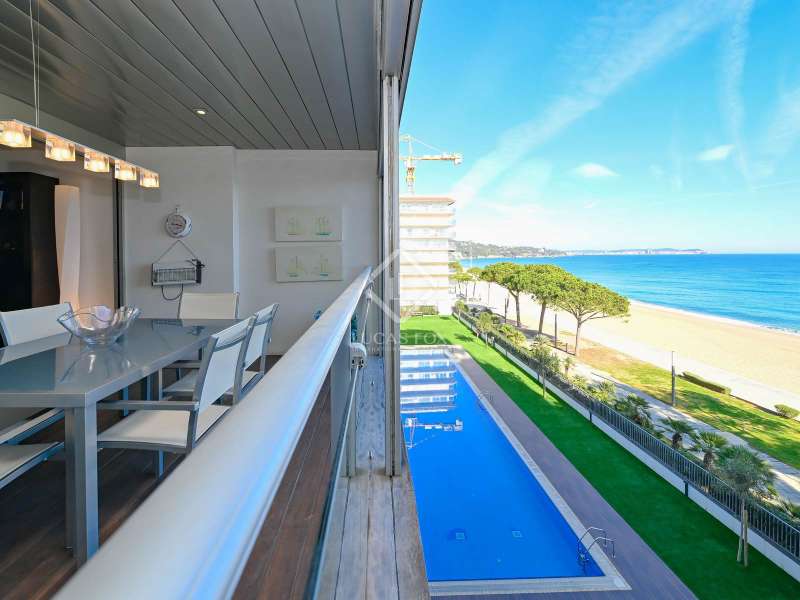 Lucas Fox presents this magnificent duplex apartment on the seafront, ready to move into, located in one of the best areas of Platja d'Aro. This property stands out for its impressive sea views and its functional design. The duplex has three large bedrooms and two bathrooms. On the entrance floor , we find a double bedroom with a private bathroom. The main floor has a bright living-dining room with direct access to a large terrace with sea views, a fully equipped open kitchen and two additional bedrooms with a full bathroom . This property is in perfect condition and is located within a high-end community that offers exclusive amenities such as 24-hour security, concierge and a community pool to enjoy moments of relaxation. The building, built in 2005, is in excellent condition. In addition, the price includes a parking space and two storage rooms. Don't miss the opportunity to live in a unique environment, in a community that offers security and comfort. For more information, please do not hesitate to contact Lucas Fox.