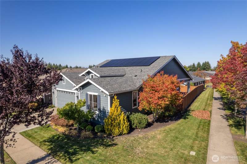 Experience luxury single-level living in Jubilee’s premier 55+ community built by Shea Homes! This elegant home feat. soaring ceilings, abundant natural light, engineered hardwoods, crown molding, & solid wood doors that add warmth & character. The open floor plan is ideal for entertaining with a chef’s kitchen offering granite counters, SS appliances & a spacious island. Private office incl. built-in desk & cabinetry. The primary suite boasts a spa-style bath & walk-in closet. Enjoy a fenced, low-maintenance backyard w/patio while the HOA maintains the landscaped front yard. Heat pump (AC) & solar power add efficiency & savings. Amenities incl. clubhouse, pool, fitness center, athletic courts, trails & golf. HOME INSPECTION AVAILABLE!