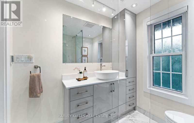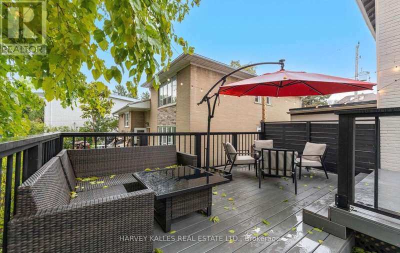 Welcome to this extensively renovated two-storey home, perfectly situated on a rare 42-foot lot in one of Bedford Park's most desirable neighbourhoods. From the moment you arrive, you'll appreciate the freshly paved private driveway with parking for two vehicles and a convenient attached single-car garage equipped with a 40-amp EV charger. Step inside to discover a bright, open-concept main level with exceptional flow between the spacious living and dining areas. Updated modern kitchen features a marble peninsula, brand-new stainless steel appliances, and sleek finishes throughout. Walk out from the main level to a stunning three-tier composite deck - the perfect setting for entertaining or relaxing - overlooking a lush, professionally landscaped garden designed for year-round enjoyment. Upstairs, you'll find three updated bedrooms Built-in closets and a fully restored bathroom. The fully finished lower level with a separate side entrance offers even more living space, including a renovated guest bedroom, a modern three-piece bathroom, and a large laundry area featuring a new high-capacity washer and dryer, double sink, and quartz countertop. Every detail of this home has been meticulously updated inside and out, combining modern comfort with timeless style. Floor plans are available in attachments. (id:6370)