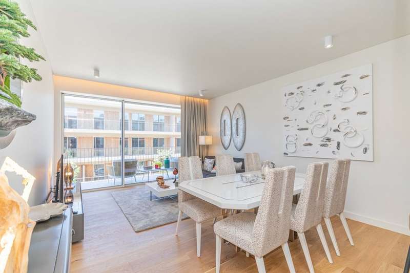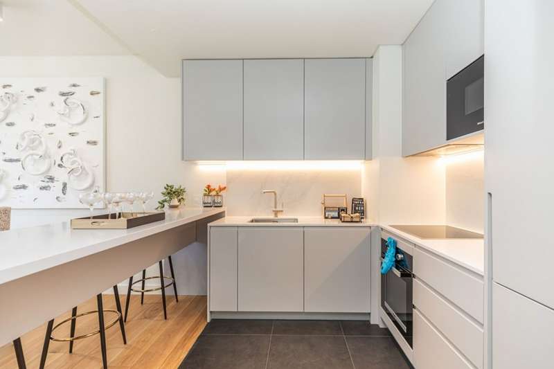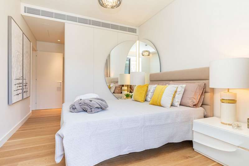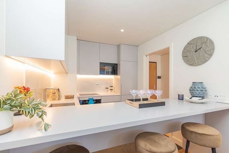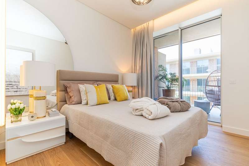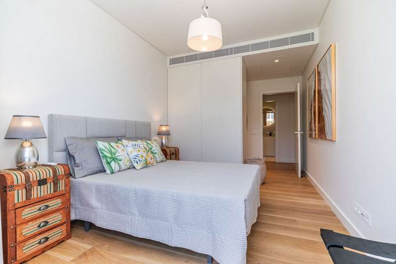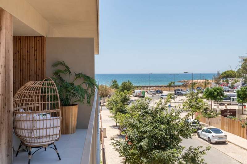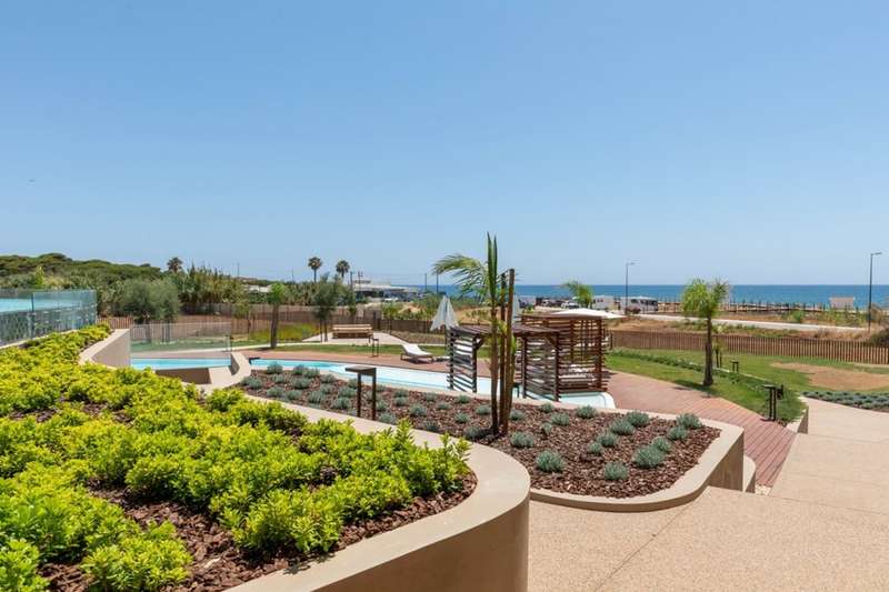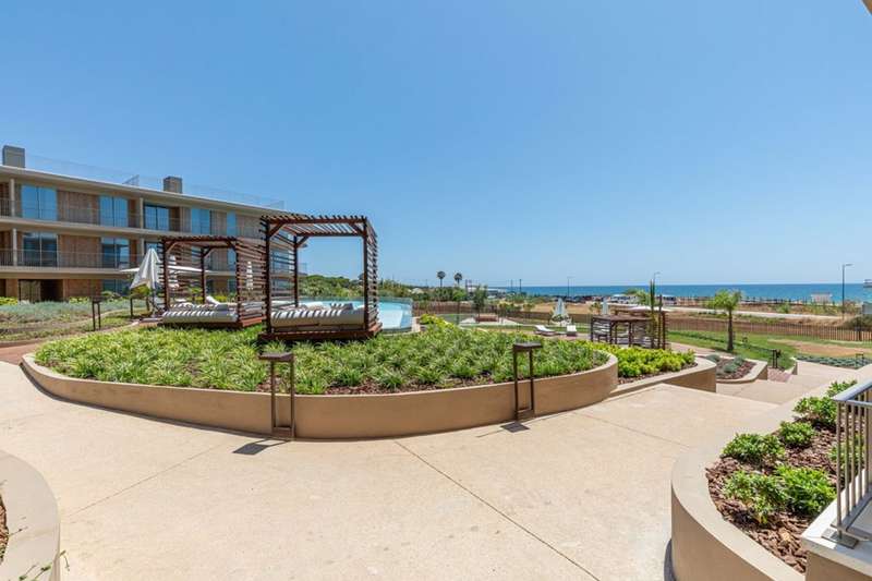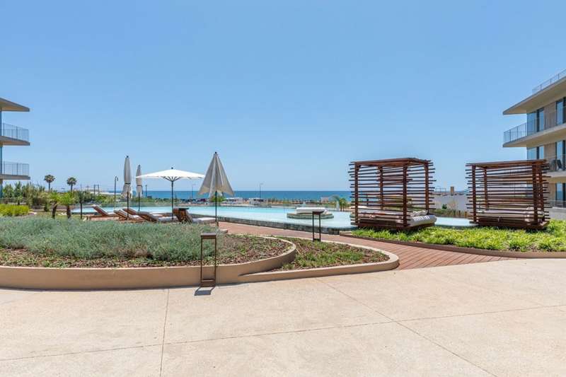 Discover this magnificent 2-bedroom apartment, new and ready to move into, located on Quarteira's prestigious seafront, in the elegant Horizon Gardens private condominium. Perfect for those looking for quality of life, comfort and a privileged connection to the ocean. With spacious and well-distributed areas , the property offers two bedrooms, one of them en suite, providing privacy and refinement. The living room and master bedroom enjoy superb views of the sea, creating the ideal setting for enjoying the sunrise and sunset in a serene setting. Fully furnished and equipped with state-of-the-art technology, this apartment has been designed to ensure maximum thermal and acoustic comfort . Among the excellent finishes are: double glazing, aluminum frames with thermal cut-out, solar panels for water heating and fire doors with acoustic insulation. Horizon Gardens offers an exclusive environment, with a swimming pool for adults and children, garden areas, communal spaces and a closed indoor garage with 24-hour video surveillance. The location is simply incomparable: just 100 meters from the beach and within walking distance of all the essential amenities - restaurants, cafés and a supermarket are just a short stroll away. CHARACTERISTICS:Area: 124 m2 | 1 337 sq ft Useful area: 89 m2 | 963 sq ft Bedrooms: 2 Bathrooms: 2 Garage: 1 Energy efficiency: A+ FEATURES: New apartment Fully equipped Ready to move into Sea front Sea views Private condominium