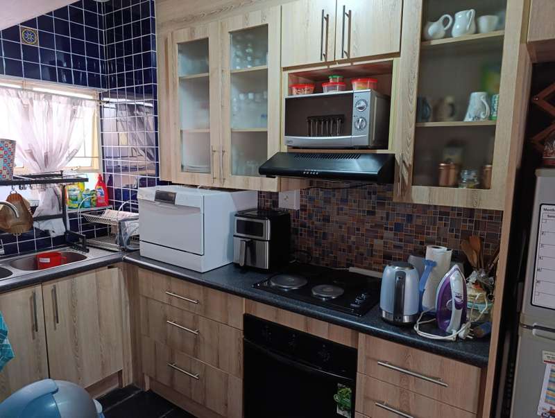 This beautiful duplex is a great lock-up and go home, perfect for a family or investor! This spacious 80m?? property is situated in a safe and secure, sought-after complex in the heart of Wonderboom South. Beautiful stone flooring in the open plan dining room, living room and kitchen area. Two spacious bedrooms upstairs with built in cupboards and renovated flooring, the main bedroom also has a built-in dressing table. The modern full bathroom, which is also upstairs, is fully tiled and renovated, consisting of a basin, toilet, corner bathtub and a shower. Downstairs you have the beautifully renovated kitchen that is fully equipped with built in cupboards. The open plan living room and dining room creates a homely atmosphere, where families can spend time together or entertain guests as the layout of this unit makes it very easy to do so. Cozy garden with a patio, safely secured. A maximum of 2 small dogs allowed (approval process of the Body Corporate). Unfortunately no cats. The unit comes with one lock-up garage. Situated in a well maintained complex. Washing lines and laundry area as an added bonus (shared between two units). Vicinity: Very close walking distance to Wonderboom High School, close to Wonderboom South Primary School, Boerefort Primary School, Eugene Marais Hospital, Steve Biko Hospital, Gezina Galleries Shopping Centre, Wonderboom Junction Shopping Centre and many other amenities.
