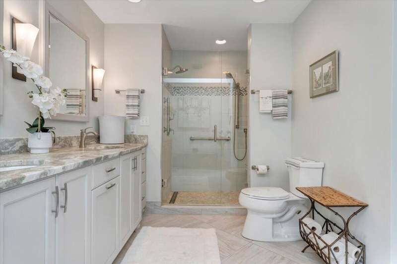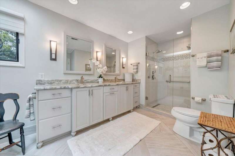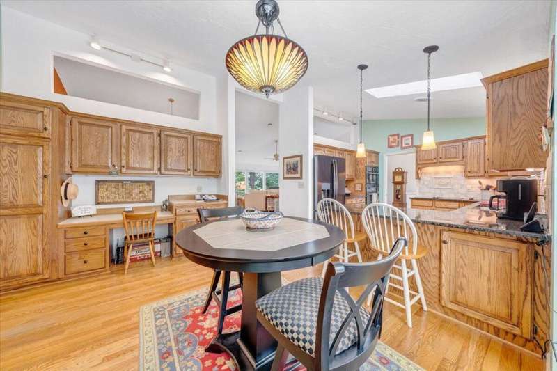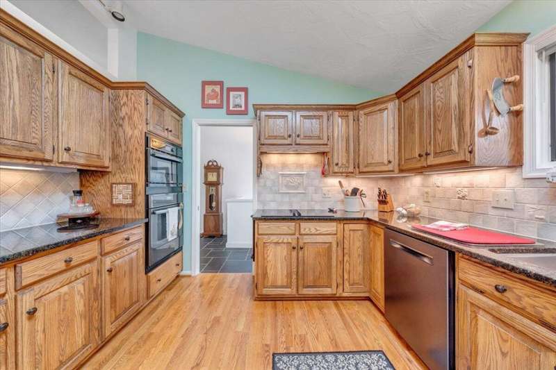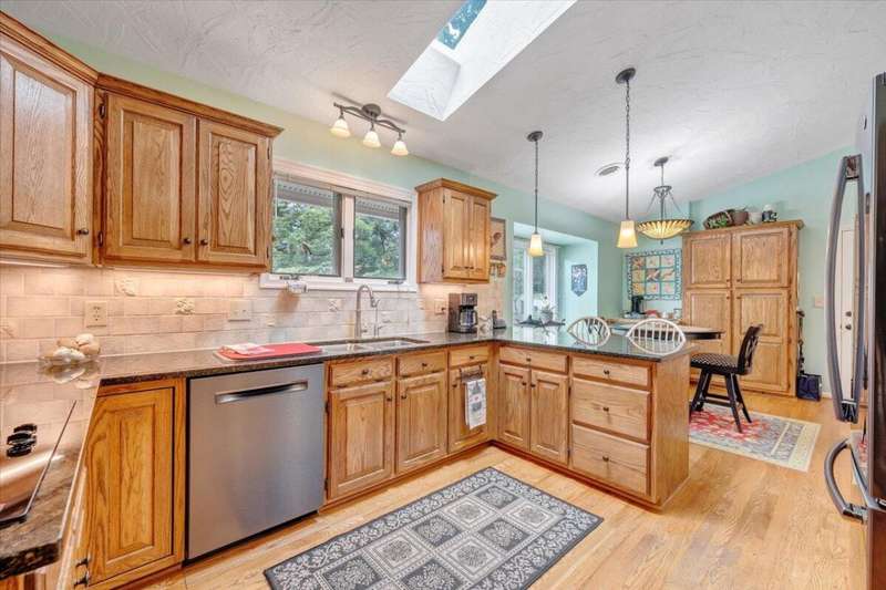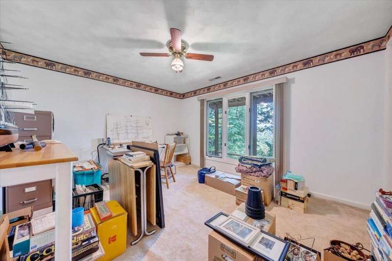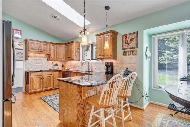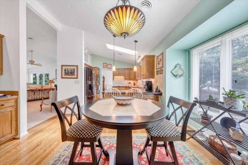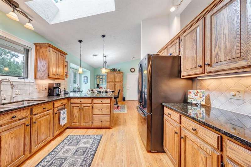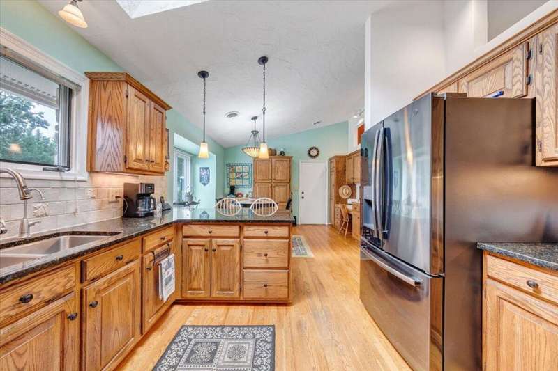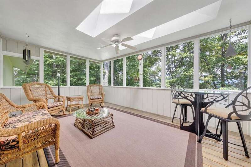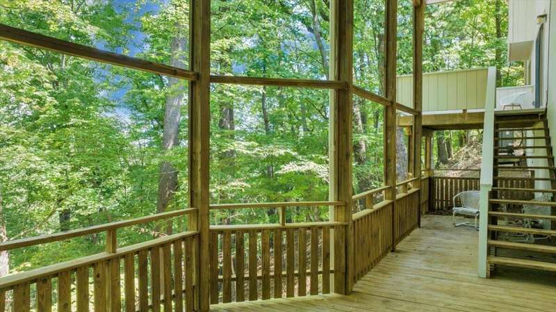 Ever wanted to live in a treehouse? Meet your future home! This modern 4BR/3.5 BA mountainside retreat in Oak Grove/Hidden Valley is built for the views. Step into the foyer and discover treetop vistas framed by oversized windows - like living in a cloud forest! The main level flows seamlessly with a kitchen, dining room & great room, all featuring impressive vaulted ceilings. Skylights flood the kitchen & screened porch with sun - imagine candlelit dinners there as the leaves flame into color, or morning coffee while admiring winter views of the mountains & deep-blue Kimble Lake below. On the main floor, you'll also find an office, half bath, & owner's bedroom with gorgeously remodeled full bath (2018), giving you the option of one-level living with plumbing for laundry available.