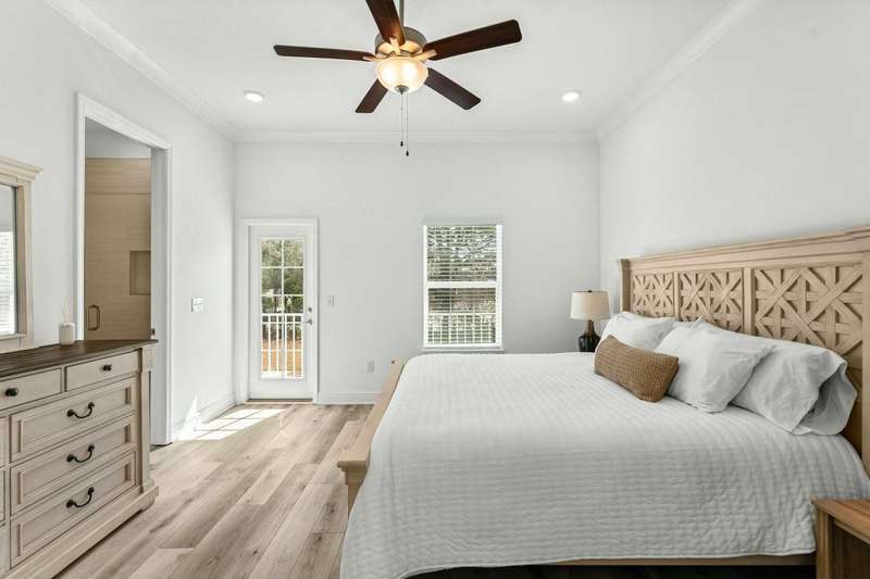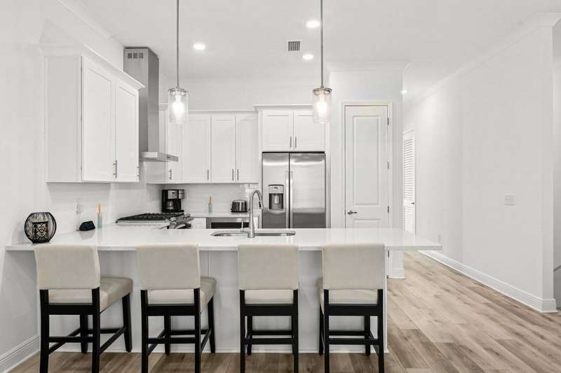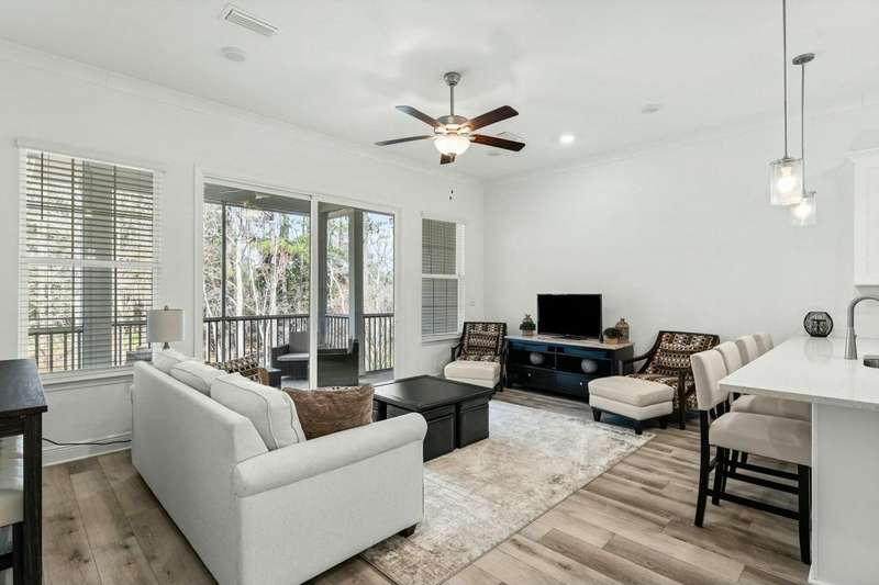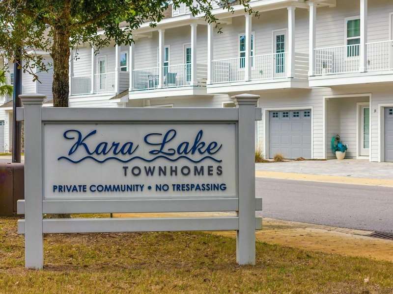 Located just a short drive from the stunning beaches, shops, and restaurants of Santa Rosa Beach and 30A, this beautifully designed townhome offers the perfect blend of luxury and convenience. Nestled in a sought-after community with a pool and adjacent to the scenic 5-acre Kara Lake, this property is an ideal investment or personal retreat. This thoughtfully designed floor plan features three bedrooms, two and a half bathrooms, and a one-car garage. High-end finishes elevate every space, including quartz countertops, stainless steel appliances, LVP flooring throughout, soaring 10-foot ceilings, and 8-foot sliding glass doors. Step into the light-filled entryway, where a flexible foyer space creates a warm welcome. The property also features spacious bedrooms for quiet resting after a long day at the beach. An open living area right off the well-appointed kitchen complete with a gas stove lets everyone join in the fun and relax. The private elevated porch is great for enjoying our warm breezes and spending some comfortable time enjoying being outside. And don't worry about having to bring in the groceries during a rainstorm as you can pull into your own private garage and stay dry during those afternoon showers.Don't miss this incredible opportunity to own a beautifully finished home in a prime location, perfect for full-time living, a vacation getaway, or an income-producing short-term rental!