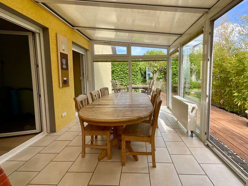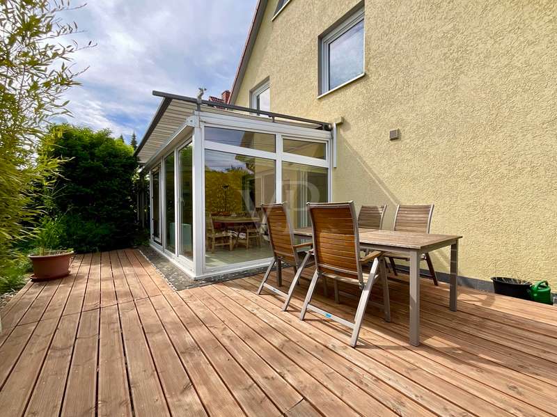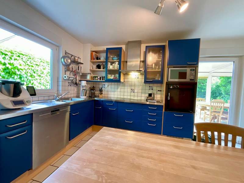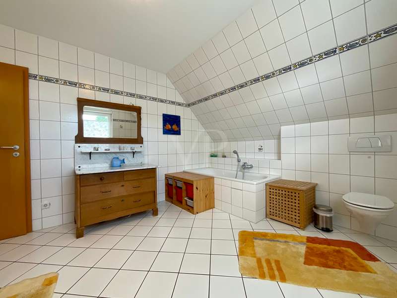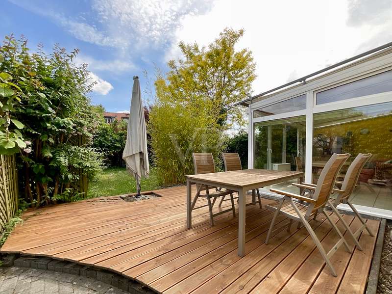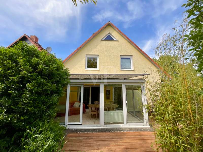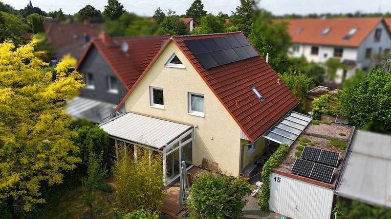 With this property, Von Poll Immobilien Hannover Region Süd presents a charming semi-detached house that will delight you. The house, built in 2000, is situated on an approx. 520 m² leasehold plot in a quiet and idyllic location in Wennigsen. The property presents itself with a spacious living area of approx. 158 m² and a bright living atmosphere. With 5 bedrooms, 2 bathrooms and a kitchen with enough space for a large dining table, you can expect a home with plenty of opportunities for family time and sufficient space for privacy. The living space is complemented by a heated conservatory and a converted loft, which can be reached from one of the rooms on the top floor and offers a cozy retreat. The heart of the house is formed by both the living room, in which a wood-burning stove provides cozy warmth in winter, and the adjoining kitchen with a large dining area where the family can come together. From both rooms you have direct access to the conservatory in front, so that the table can be set quickly. In summer, you can move the living room to the terrace adjoining the conservatory or directly into the beautifully landscaped garden. This will delight you, as it offers extensive vegetation for garden lovers and plenty of space for leisure activities or simply relaxing in the fresh air. The 2nd terrace, which is located at the rear of the property, has a special surprise in store for you. A barbecue area integrated into the ground offers you a sheltered area for happy get-togethers. If you want to retreat, you will find peace and quiet in one of the three bedrooms on the top floor. Depending on your family needs, you can set these up as bedrooms, children's rooms, offices or guest rooms. As the rooms are all roughly the same size, there will be no arguments when it comes to dividing up the rooms between the children. The bathroom, which is available on the top floor, impresses with its size. It offers the large family in particular the convenience of several family members being able to use the bathroom at the same time. A special highlight can be found on the first floor. Here, another room is waiting to be furnished by you. This room is adjoined by another room with an open-plan design, allowing you to create a perfect combination of bedroom and dressing room or as a guest room and study. Best of all, however, the shower room on the first floor offers the perfect opportunity to live in the house in old age. Storage space is provided by a practical utility room with adjoining storage room. The direct access from the garden to the utility room also has advantages. You can take your shopping directly from the garage to the utility room and use the back entrance after gardening or walking the dog, so that the hallway stays clean! All in all, you can expect a property that will impress even a large family with its extensive space and corresponding comfort. The semi-detached house impresses with its very well-kept appearance. Coupled with a bright and spacious living character and a practical room layout, it offers a good basis for your living ideas and living in old age. The modern technical equipment also contributes to energy-efficient and ecological living. The ecological concept continues in the garden. This green oasis is particularly appealing to people who like to spend their free time outdoors, bringing a little quality of life to the hectic pace of everyday life.