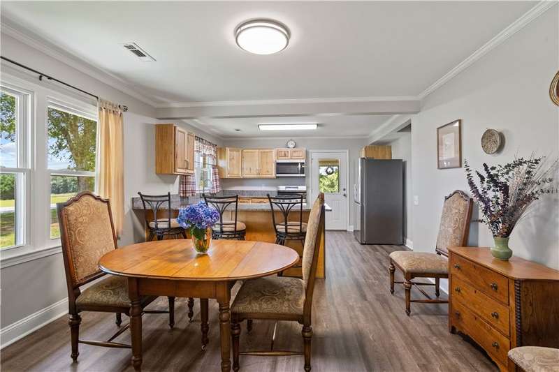 Charming, Versatile, and Move-In Ready in Seneca! Discover the ease of single-level living in this beautifully maintained brick ranch, nestled ona spacious 0.65-acre lot in the heart of charming Seneca. From the welcoming front porch to the oversized detached two-car garage, this home combines classic curb appeal with functional space. Step inside to a generous living room that flows seamlessly into the dining area and kitchen, offering an open and connected feel that's perfect for everyday living or entertaining. Just off the kitchen, a bright and airy sunroom provides the ideal spot to relax year-round?whether you're sipping morning coffee or enjoying a quiet evening. The well-designed layout features a spacious primary bedroom and a secondary bedroom that share a large hall bath. A third bedroom, tucked away in its own private hallway, includes convenient access to a nearby half bath and laundry room?perfect for guests, a home office, or a flexible bonus space. Enjoy the outdoors from the expansive covered patio, ideal for hosting gatherings or simply soaking in the peaceful surroundings. Ample indoor and outdoor storage options add everyday convenience. Whether you're a first-time buyer, downsizing, or searching for a serene retreat, this versatile home has something for everyone. Don't miss your chance to call this Seneca gem your own!