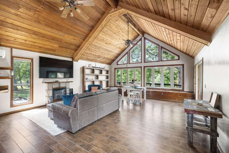 Gorgeous Riverside Retreat right off the Elk River. FULLY FURNISHED right down to the espresso maker and completely Move-In Ready, this raised cabin is elevated above flood level and comfortably sleeps eight people, ensuring comfort and peace of mind in your purchase. Enjoy the spectacular views of the Elk River from the elevated wrap around porch, or cook a meal in the luxury stone fire pit and patio area below the deck, a perfect area for outdoor entertaining. Located closest to the river in the neighborhood, this property boasts an elevator for ease of access, stunning interior skylights, and rough hewn trim that gives it a lovely ''cabin retreat'' feel. New Features include 1-Yr old metal Roof, 3-Yr mini splits zoned throughout the home with central heat/air as backup, New Stove, freshly painted deck and updated plumbing. Every detail has been considered, with freeze-proof measures in place and energy efficient HVAC. All the unique interior rough trim has been freshly sealed and stained, and luxury scratch proof vinyl flooring and tile is laid throughout the home. Flood insurance is cheap at $600/year due to the nature of the construction, and this home is furnished with all the amenities needed to be comfortable. Don't wait - call your favorite agent today to see this beauty!