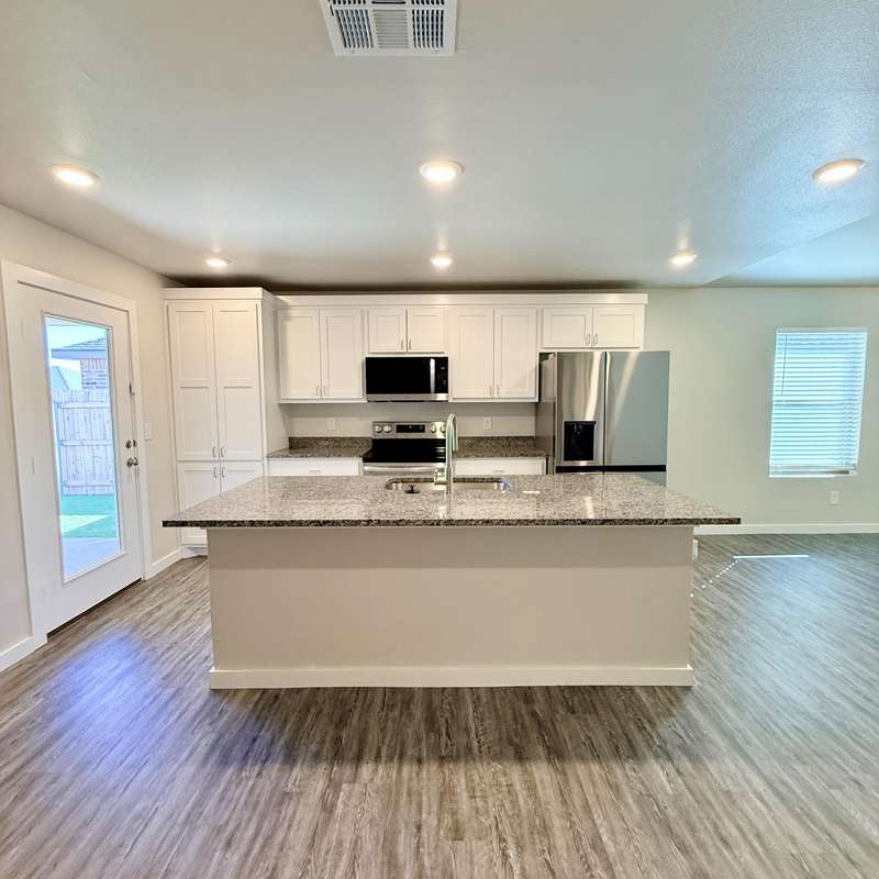 1/2 off first months rent move in special! - 3 Bedroom 2 Bath Home Available Now In Elm Meadows! This beautiful home is located in the growing division of Elm Meadows. Enjoy great times at the neighborhood park just a few blocks over and get quick access around town through the Interstate just less than a mile away. This home features a size-able entry way with an open concept living, luxury vinyl flooring throughout, and recessed lighting. Spacious kitchen with large island, granite countertops and all stainless steel appliances. Bathrooms feature beautiful modern finishes and large master walk in shower and closet. Enjoy no maintenance landscaping with Astro turf and rock backyard. This home is a must see! Schedule your tour today and ask about our security deposit alternative through Obligo! Schools: Hodges Elementary, Dunbar Jr. High, Estacado High School Roommates Considered: (3 @ $1600 deposit), Pets Considered: (2 @ $500 pet deposit per pet)