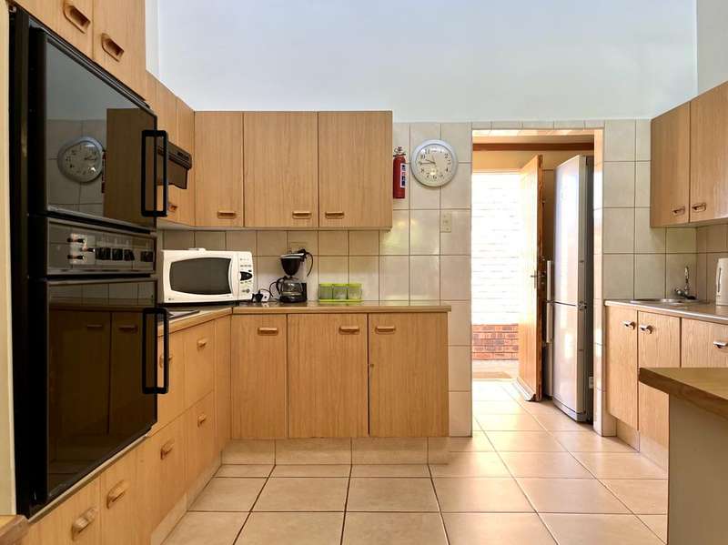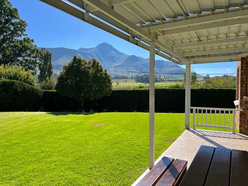 Solidly build Lerola property comprising of 4 bedrooms, 2 full bathrooms. Large kitchen with breakfast nook and separate scullery. Open living area with dining, and living room with fireplace leading to a covered patio with build in braai. Patio overlooking Mt Horeb and views of the Clarens Golf course. Double garage and outside toilet. Jojo tank is a bonus! Property was used as a guesthouse. Absolutely no work needed and is move in ready and sold fully furnished. Call us to view this pristine property.