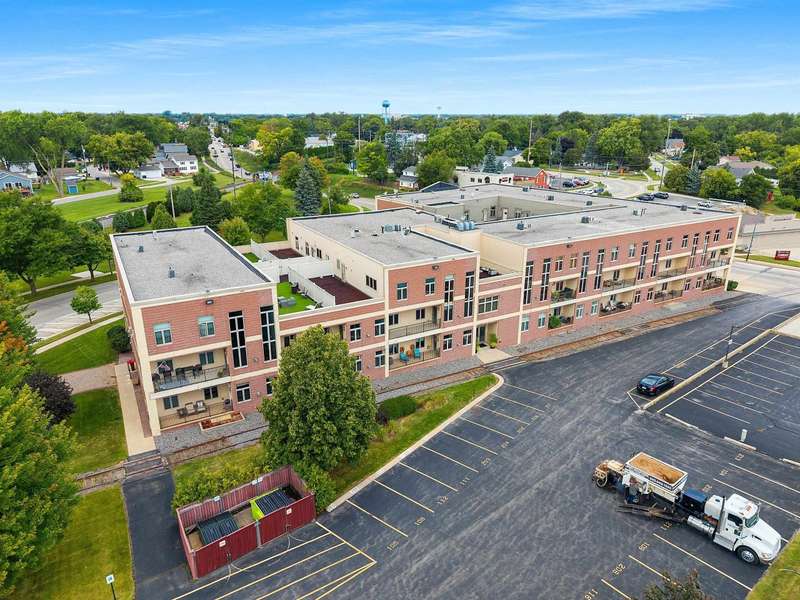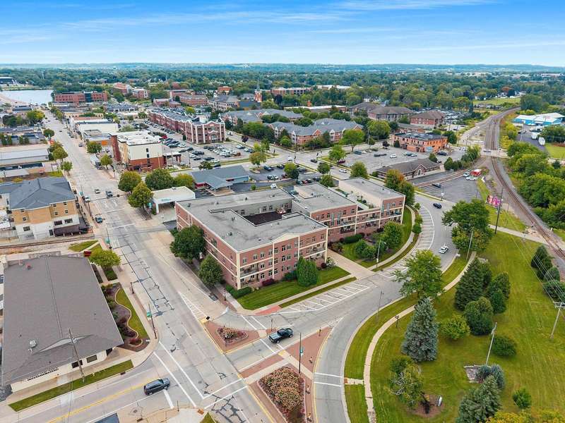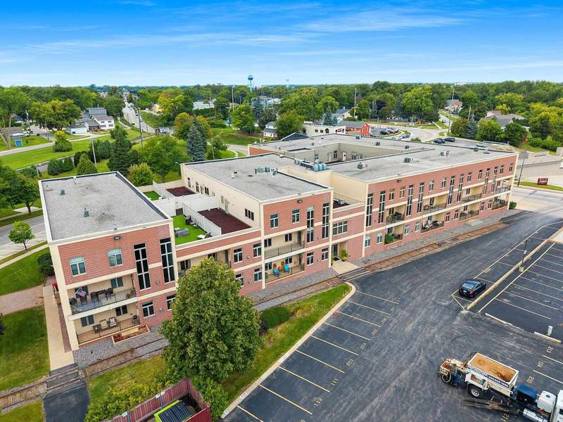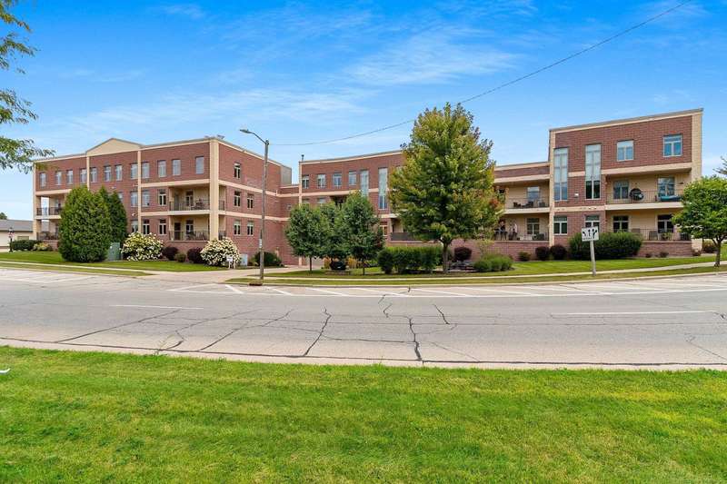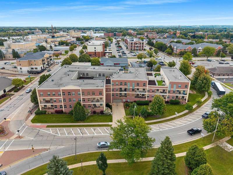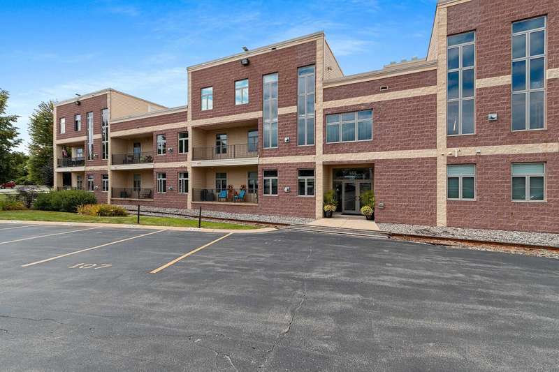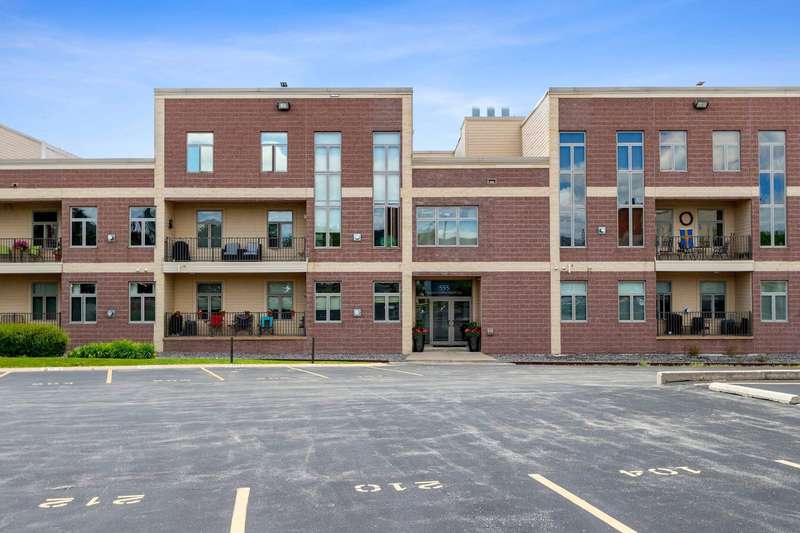 Luxury condo living in the heart of downtown De Pere! This stair-free, first-floor unit offers an open-concept layout with granite counters, stainless steel appliances, gas range with vented hood, pantry, and smart home features including LED lighting. The spacious primary suite boasts a walk-in closet, jetted tub, dual sinks, and walk-in shower. Guest bed and bath offer comfort and privacy. Enjoy a private balcony and top-tier amenities: indoor pool, fitness center, rooftop terrace, outdoor patio with grill, keyless entry, security system, heated underground parking, outdoor space & storage. Photos are staged; actual photos coming soon.