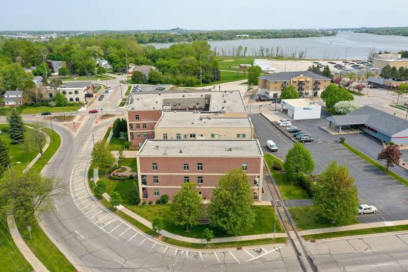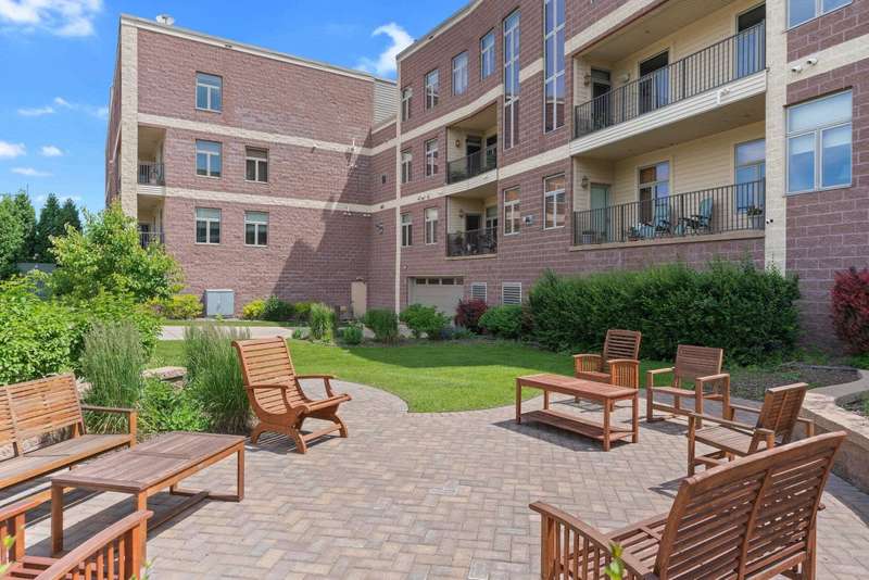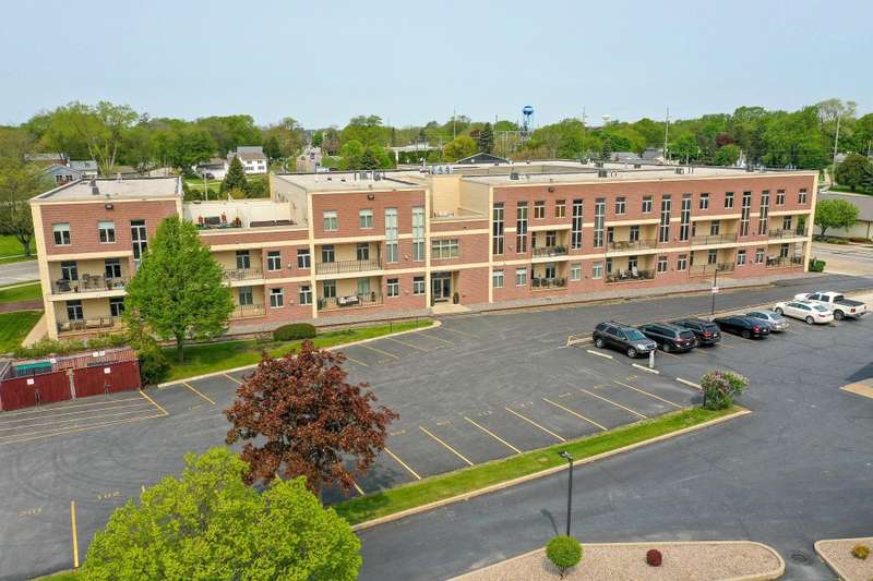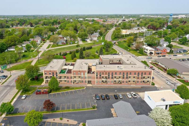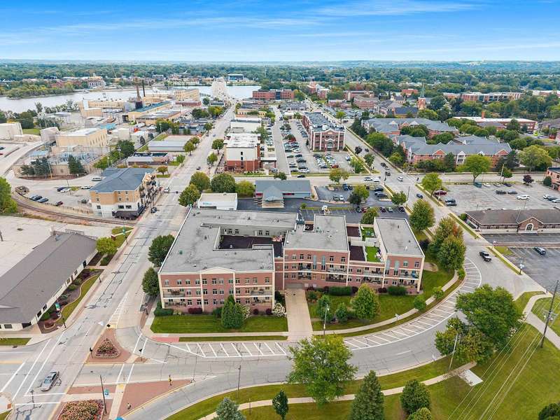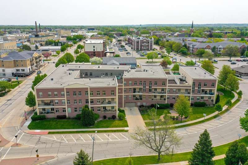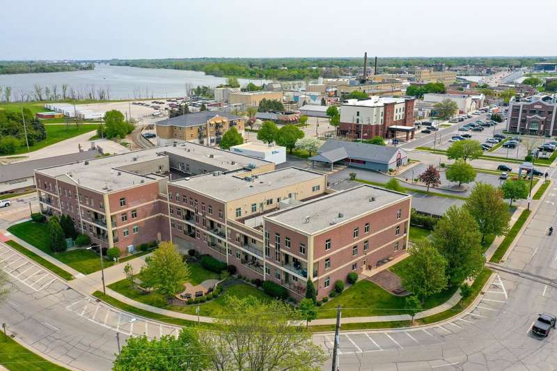 Luxury condo living in the heart of downtown De Pere! This stair-free, first-floor unit offers an open-concept layout with granite counters, stainless steel appliances, gas range with vented hood, pantry, and smart home features including LED lighting. The spacious primary suite boasts a walk-in closet, jetted tub, dual sinks, and walk-in shower. Guest bed and bath offer comfort and privacy. Enjoy a private balcony and top-tier amenities: indoor pool, fitness center, rooftop terrace, outdoor patio with grill, keyless entry, security system, heated underground parking, outdoor space & storage. Photos are staged; actual photos coming soon.